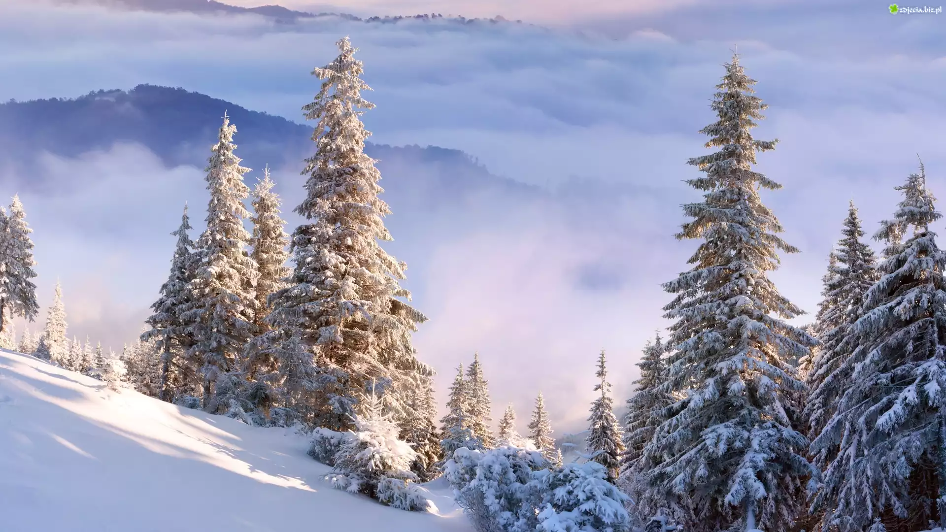 Zdjęcie Góry, Stok, Świerki, Chmury, Zima