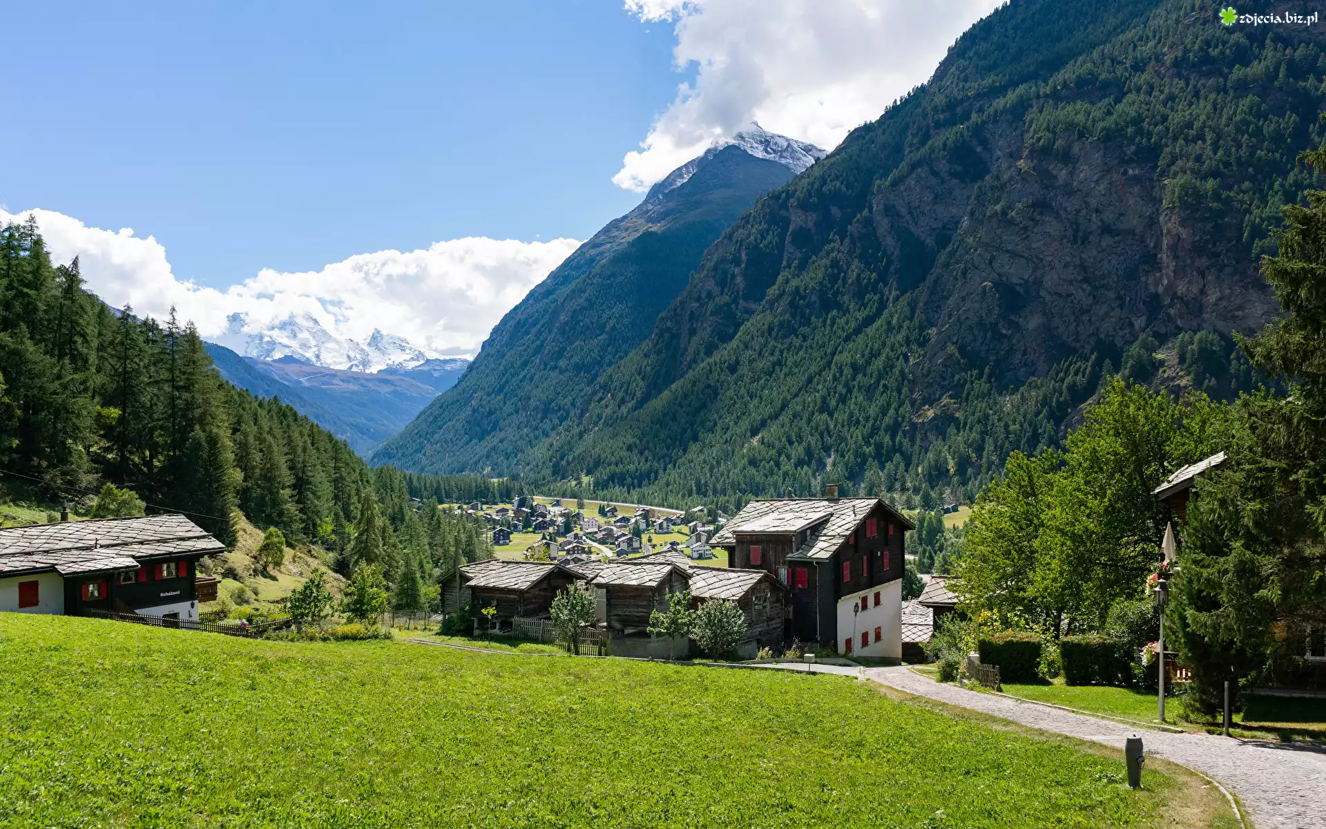 Zdjęcie Dolina, Góry, Domy, Droga, Las
