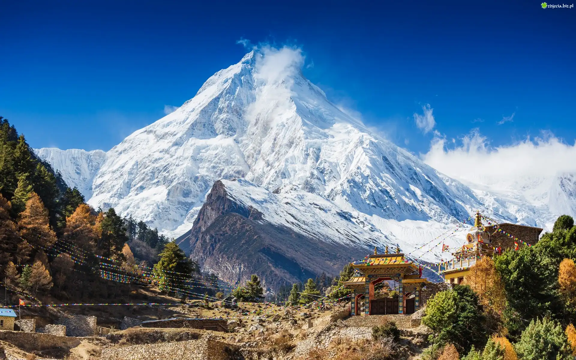 Zdjęcie Góry, Mgła, Lasy, Skały, Domy, Chiny