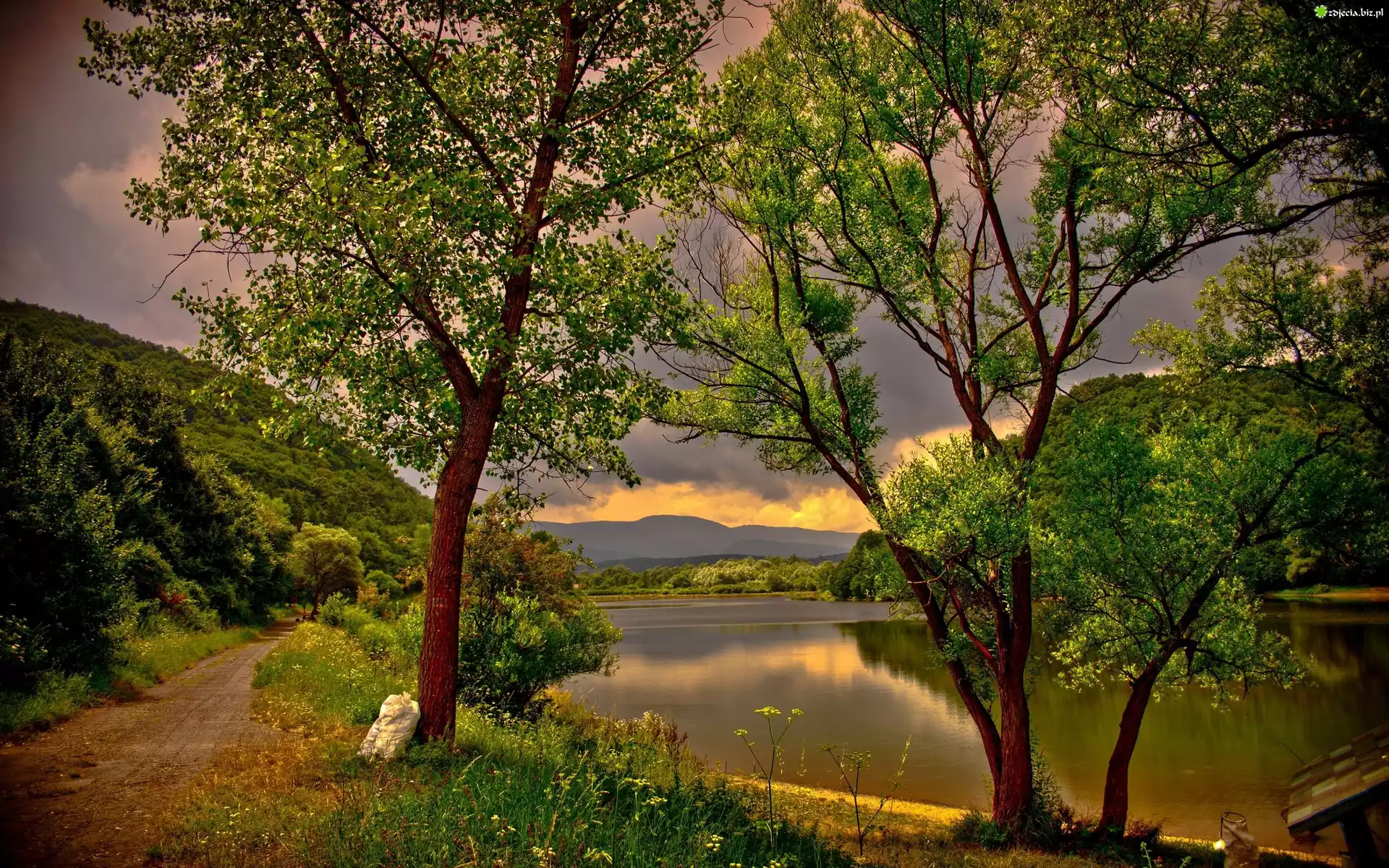 Zdjęcie Góry, Lasy, Droga, Jezioro