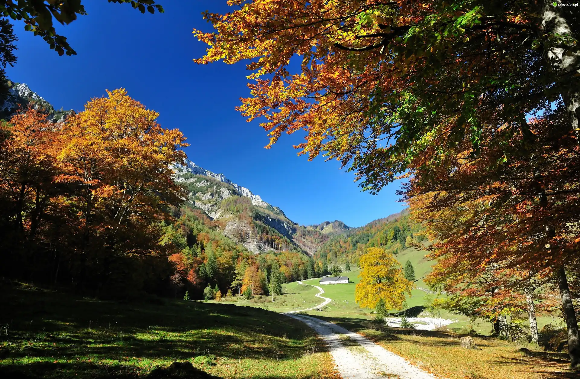 Zdjęcie Góry, Droga, Drzewa, Jesień