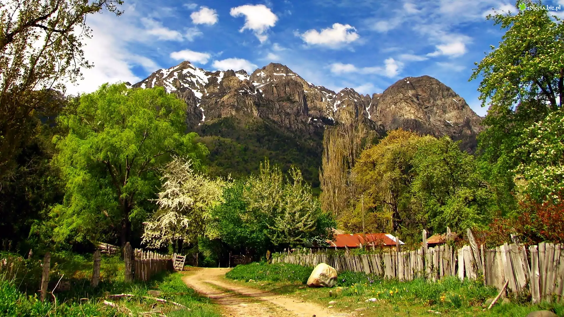 Zdjęcie Góry, Droga, Drzewa, Wioska