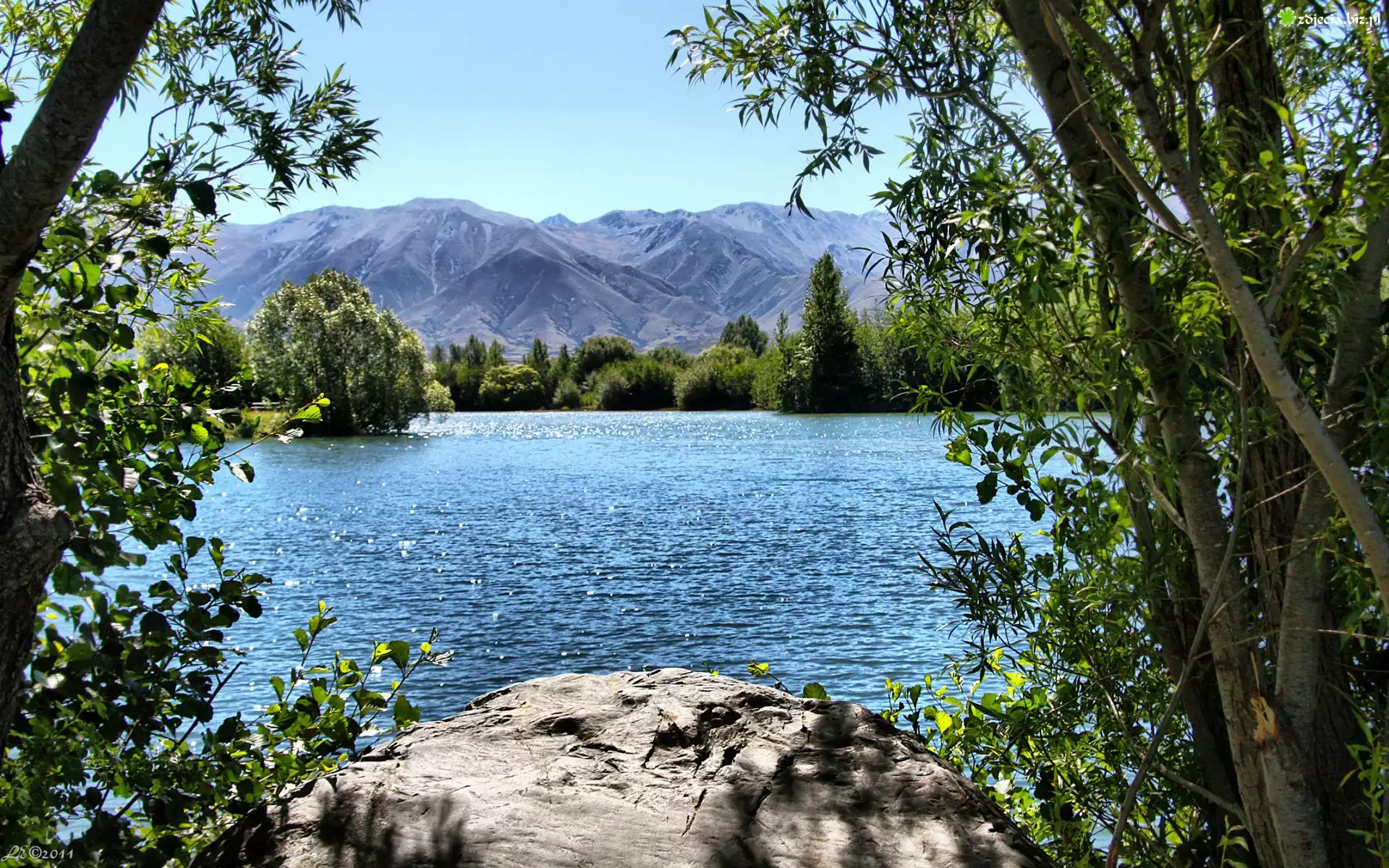Zdjęcie Góry, Jezioro, Drzewa, Głaz