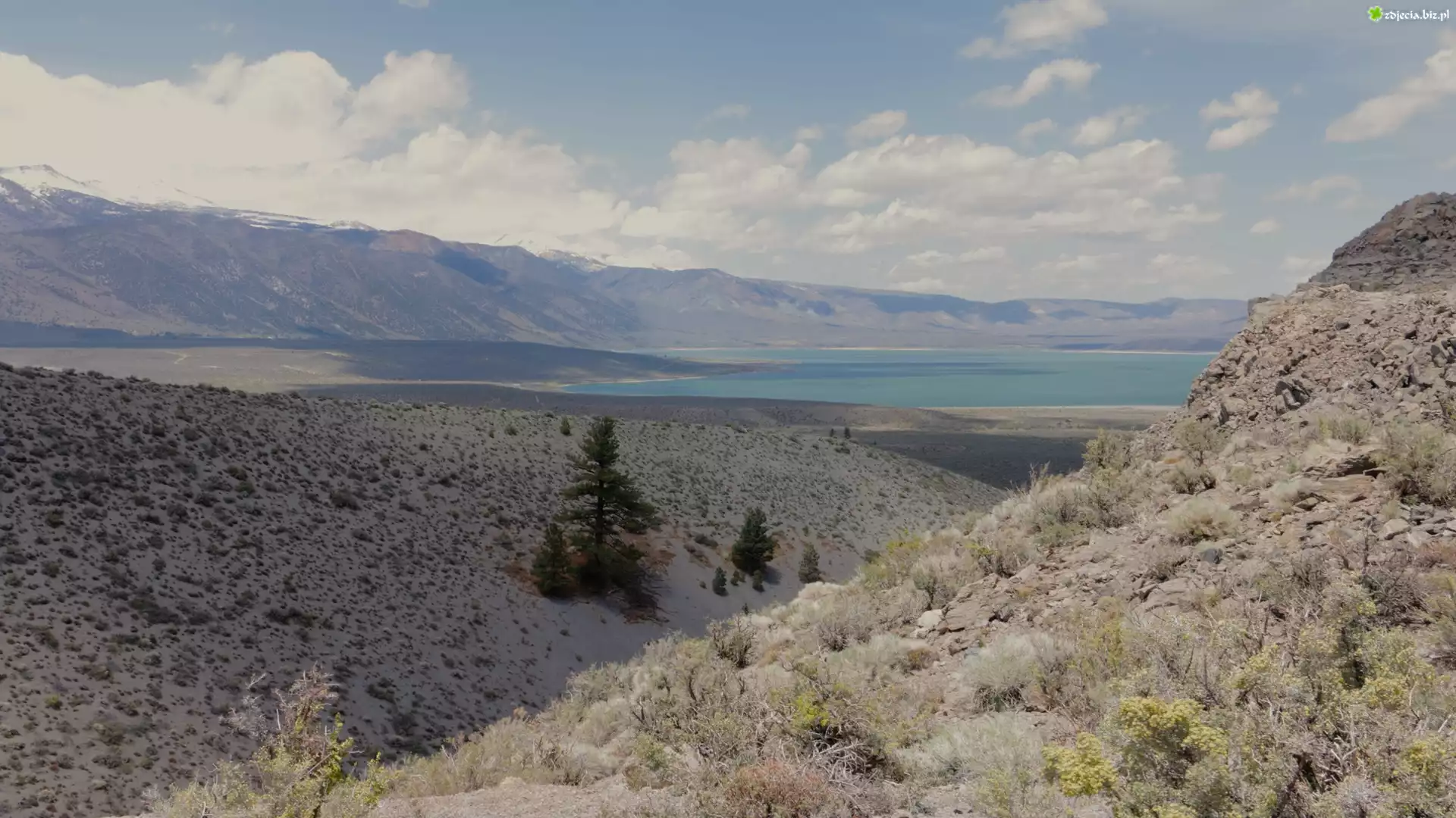 Zdjęcie Góry, Skały, Drzewa, Jezioro