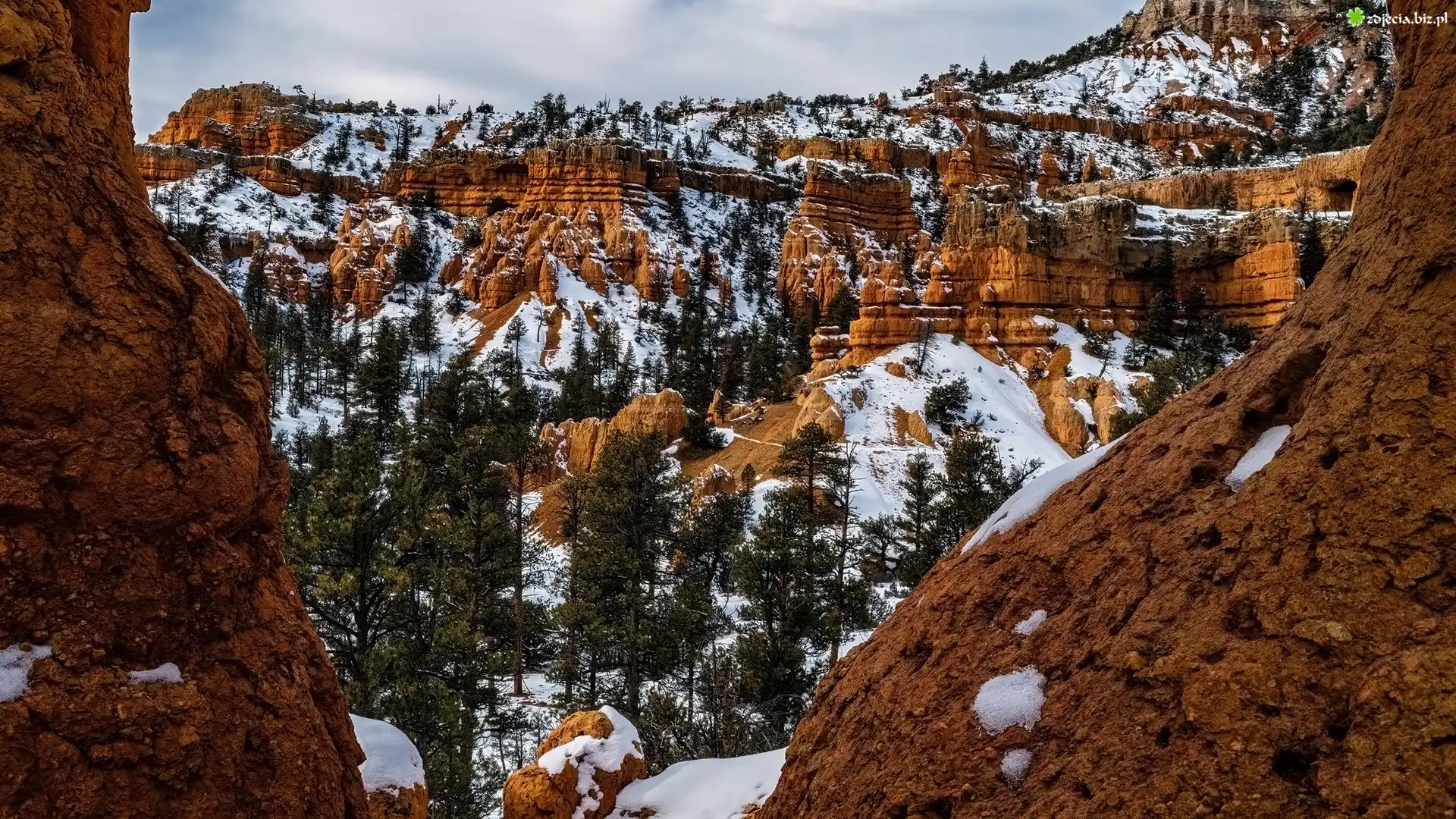 Zdjęcie Zima, Góry, Drzewa, Kanion, Skały