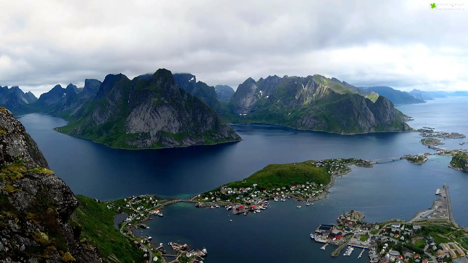 Zdjęcie, Norwegia, Lofoty, Morze, Góry
