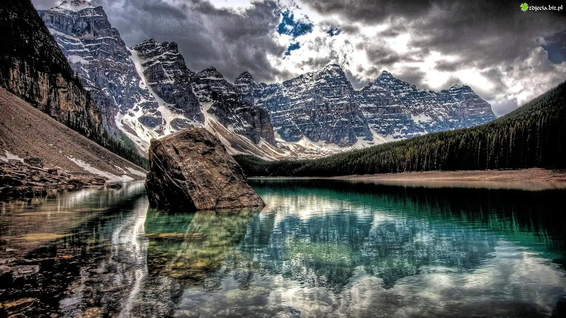Zdjęcie Góry, Jezioro, Głaz, Chmury