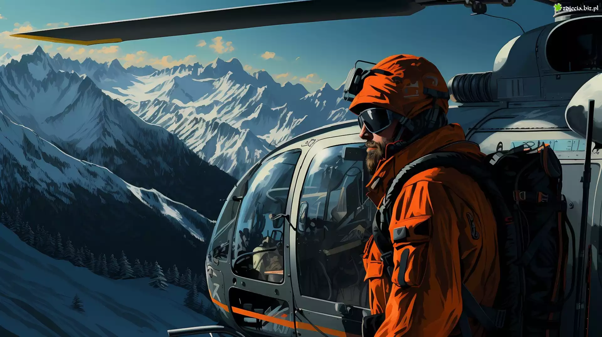 Zdjęcie Zima, Góry, Helikopter, Mężczyzna, 2D