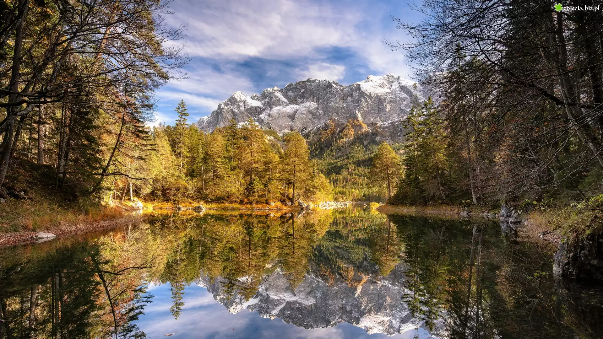 Zdjęcie Góry, Drzewa, Chmury, Jezioro, Odbicie