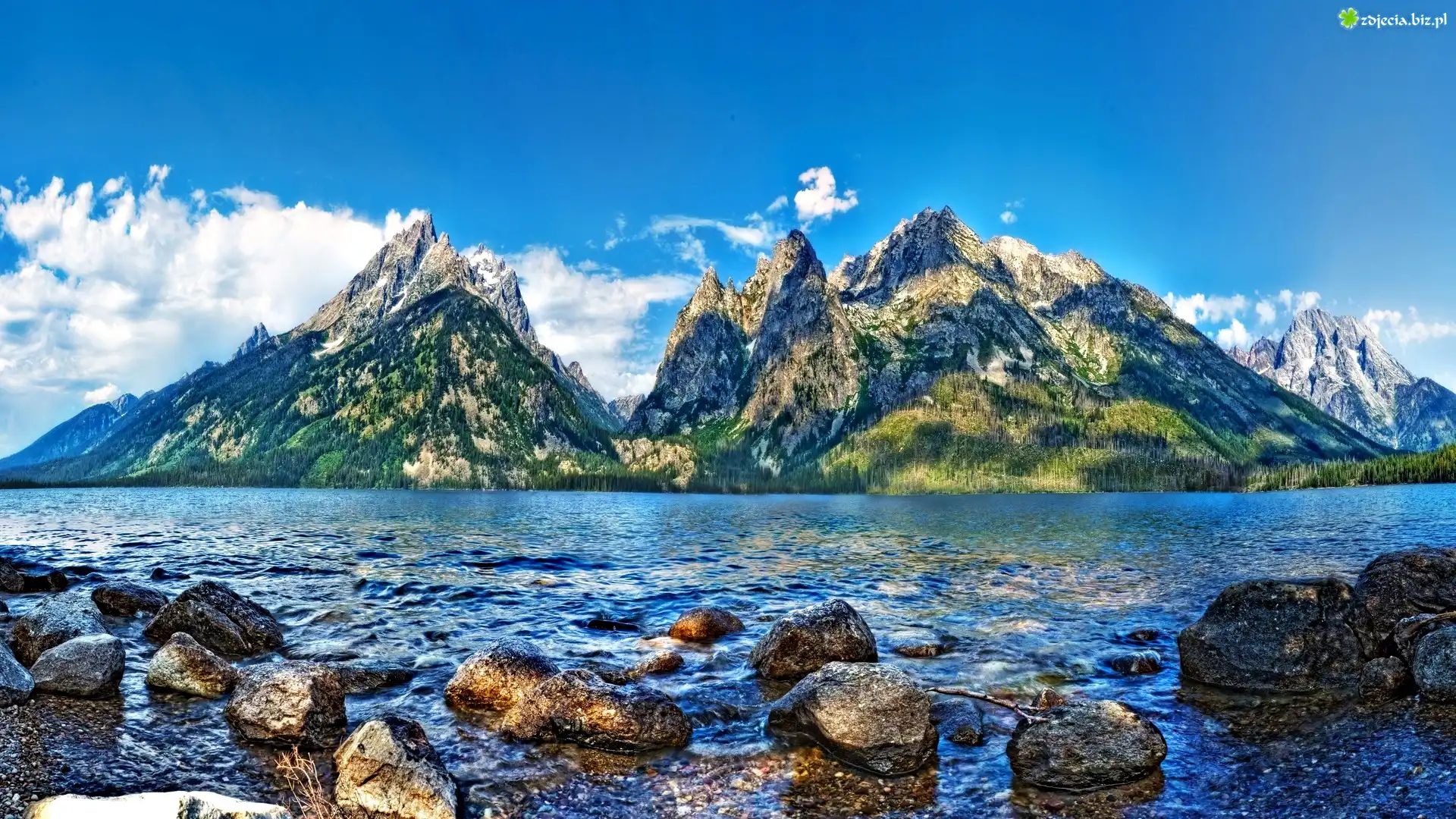 Zdjęcie Góry, Chmury, Jezioro, Kamienie