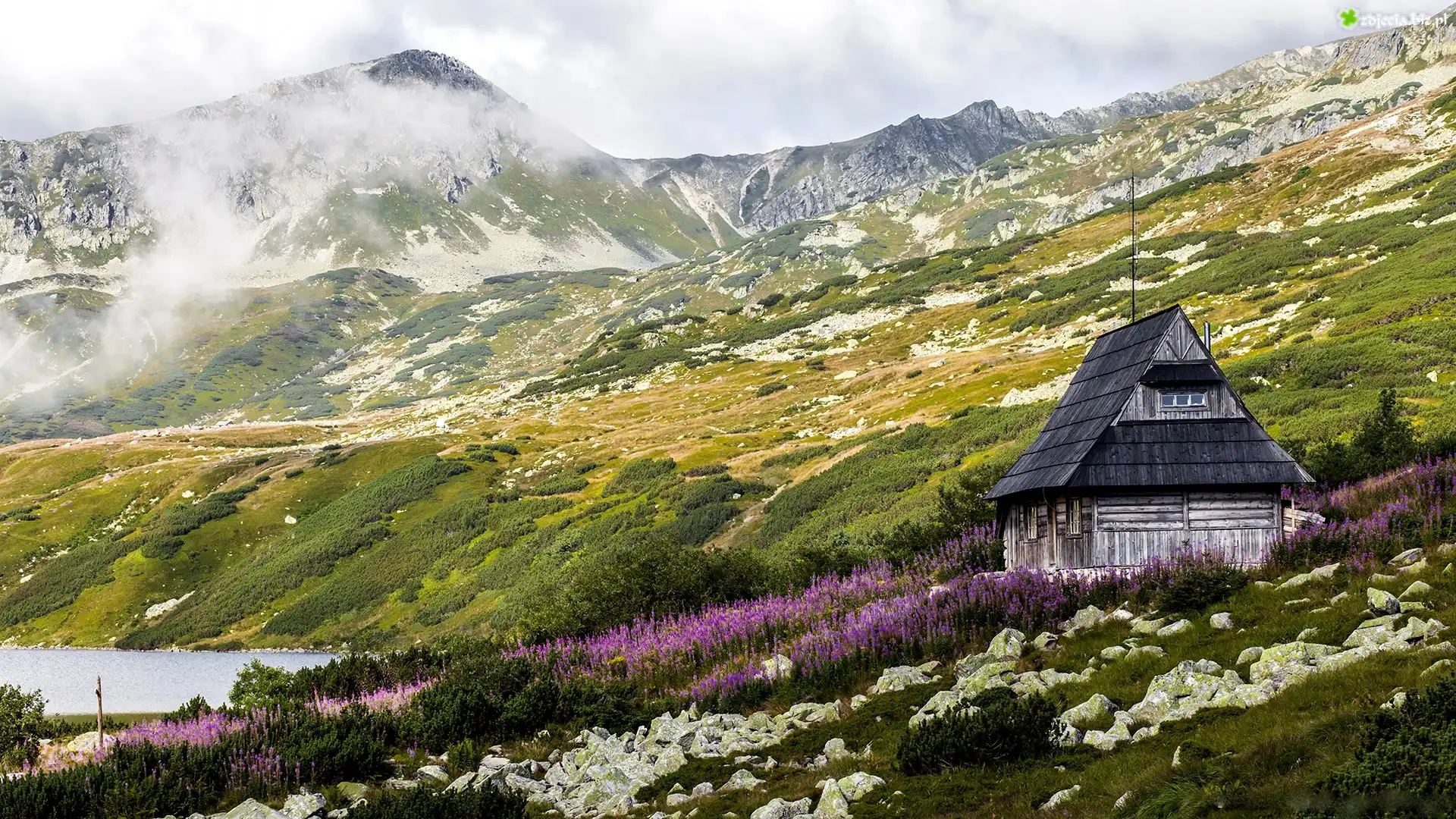 Zdjęcie Góry, Domek, Jezioro, Mgła
