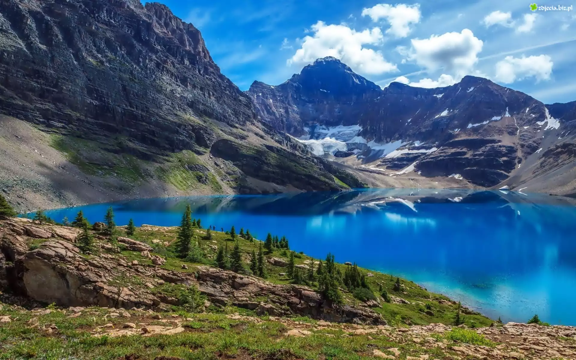 Jezioro, Gry, Odbicie Osio, Namioty, Zima Kobieta, Biuteria Drezno, Niemcy, Noc, Ulica Augustusstrasse Lew, nieg Kanada, Prowincja Alberta, Park Narodowy Banff, Dolina Valley of the Ten Peaks, Jezioro Moraine, Gry, Rzeka, wierki, Odbicie aba, Palec Dalie, W, Deszczu Zachd, Soca, Jezioro, Kamienie