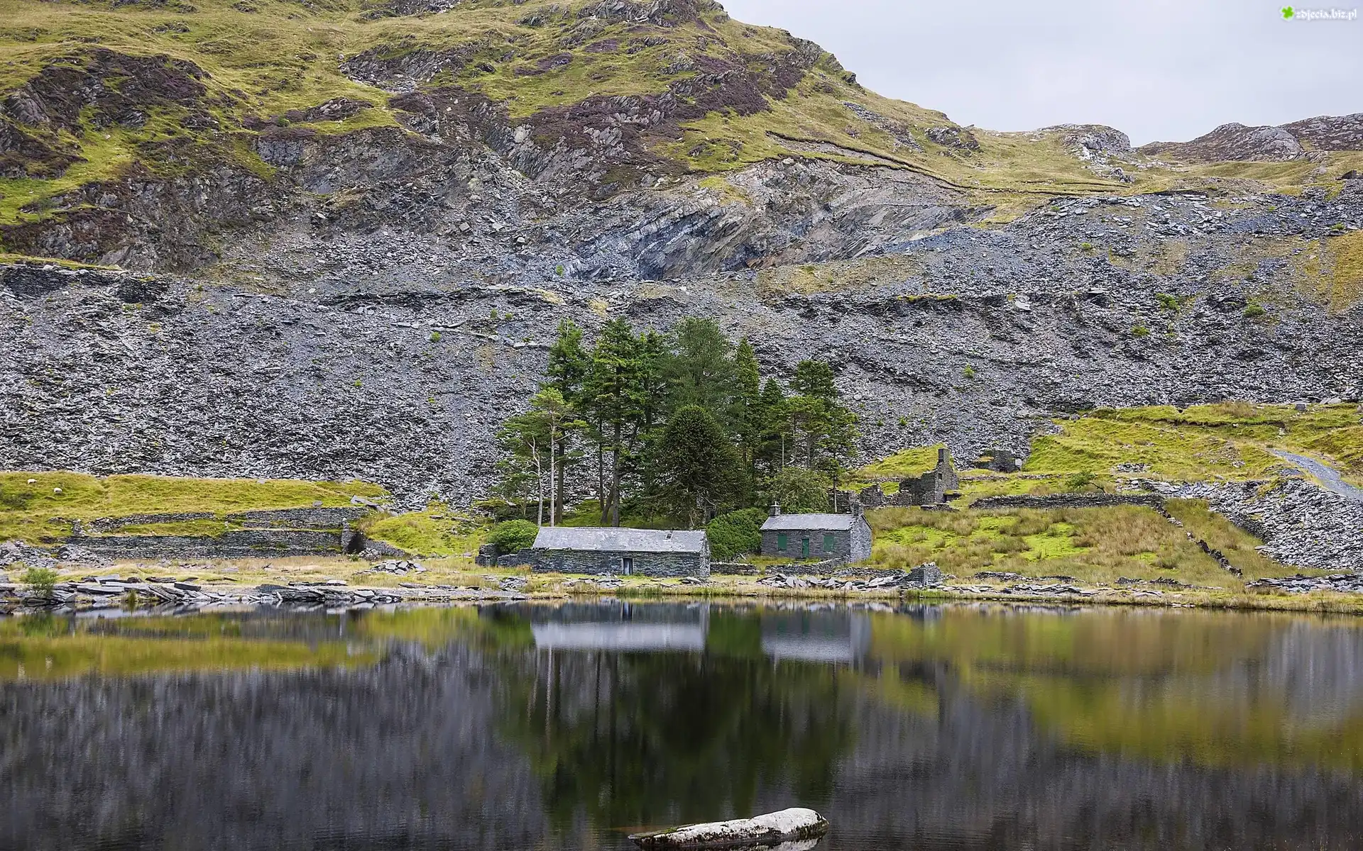 Zdjęcie Góry, Drzewa, Jezioro, Domy