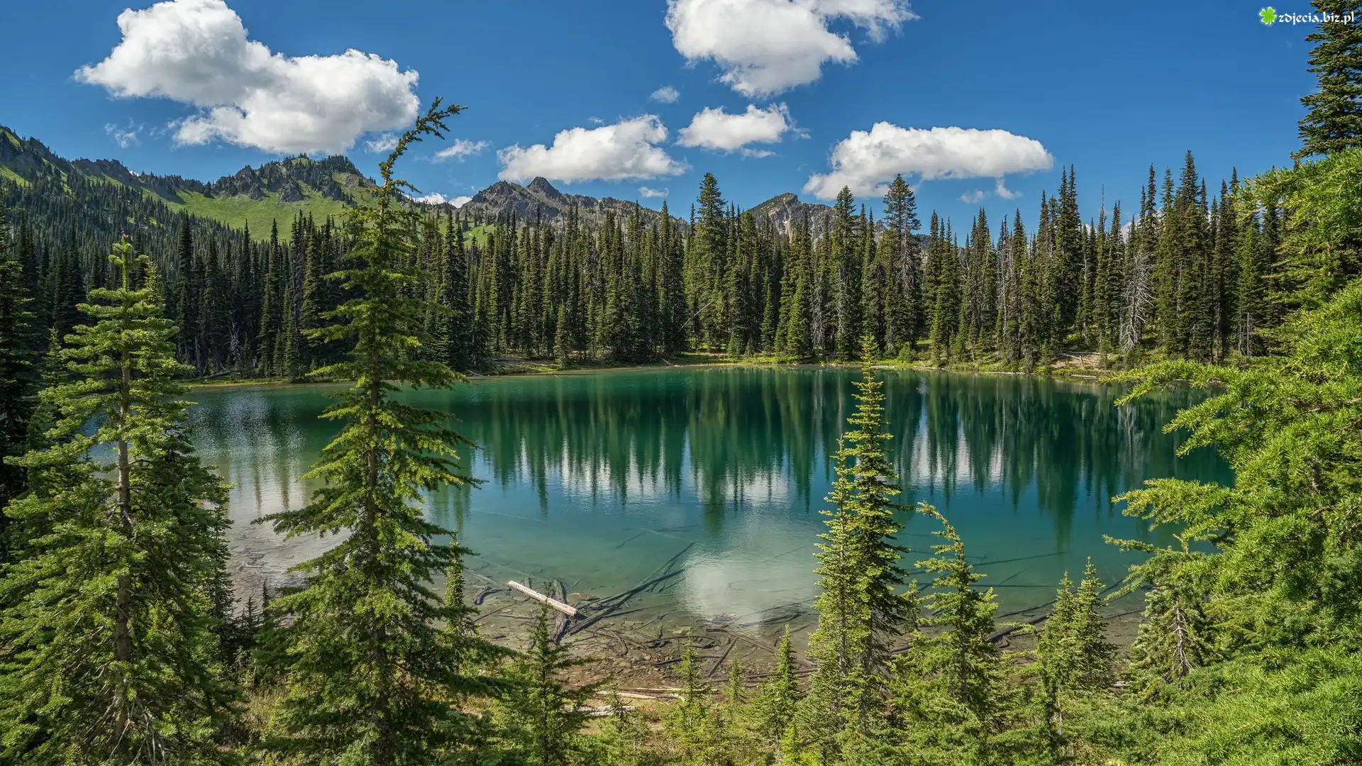 Zdjęcie Góry, Las, Drzewa, Jezioro, Chmury