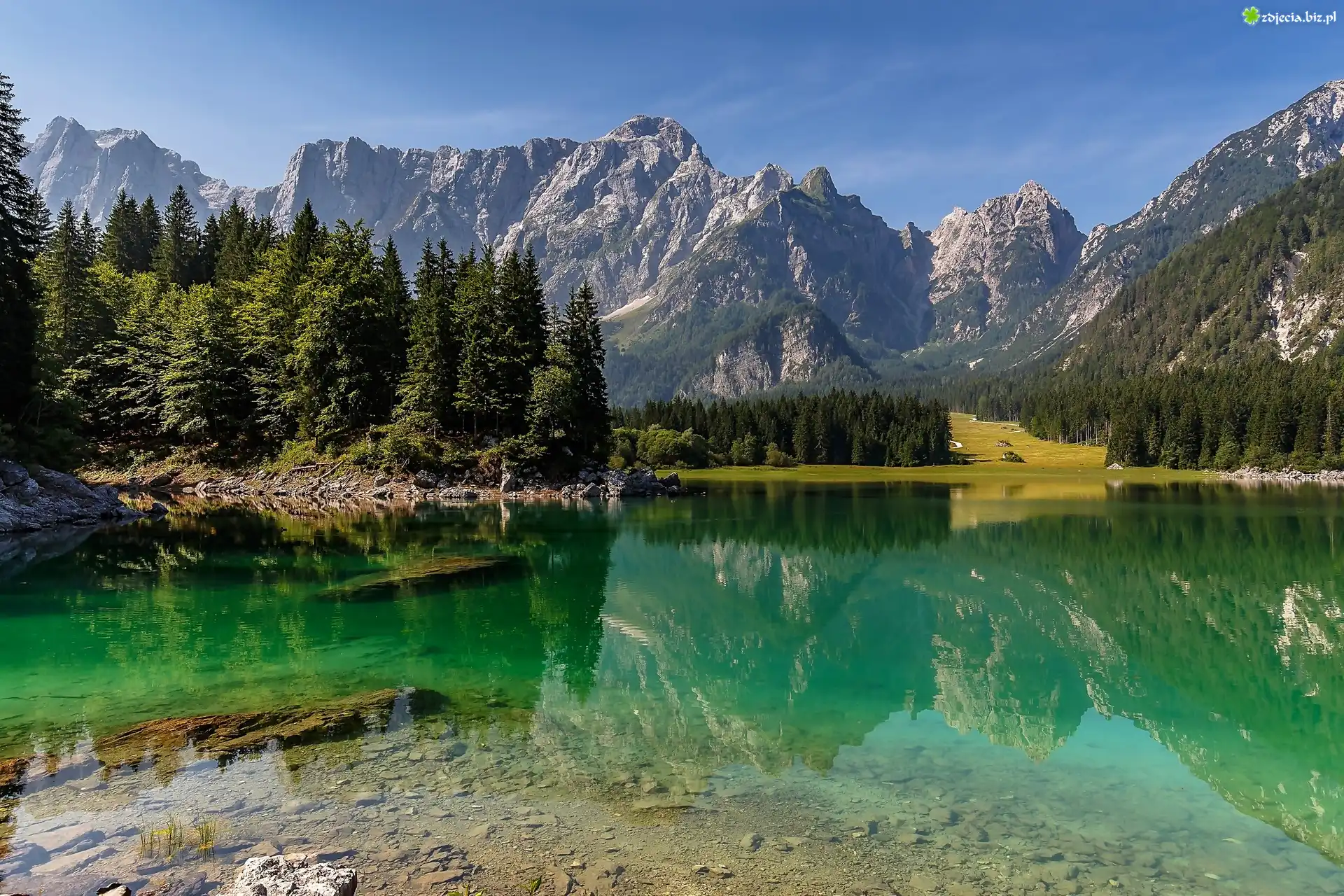 Zdjęcie, Góry, Lasy, Jezioro, Brzeg