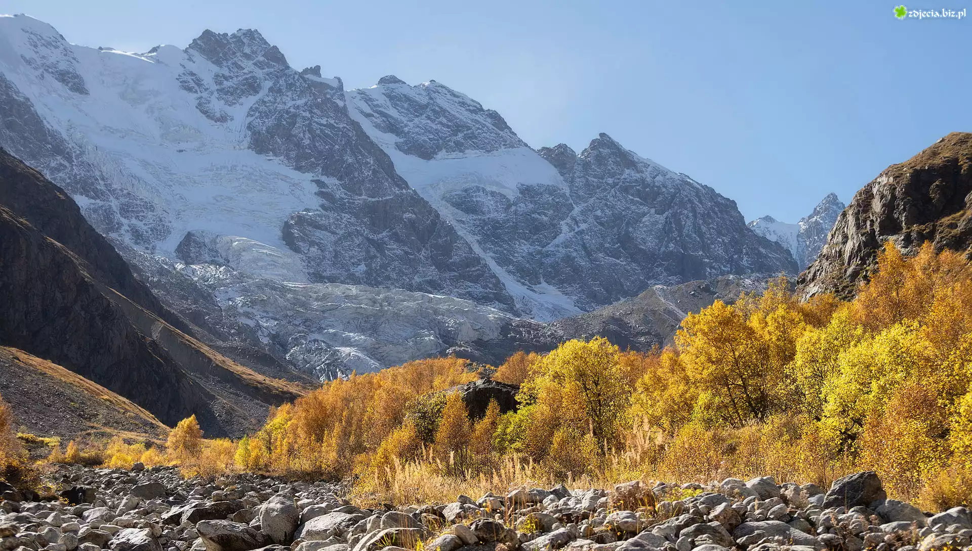 Zdjęcie Góry, Wąwóz, Drzewa, Kamienie, Jesień