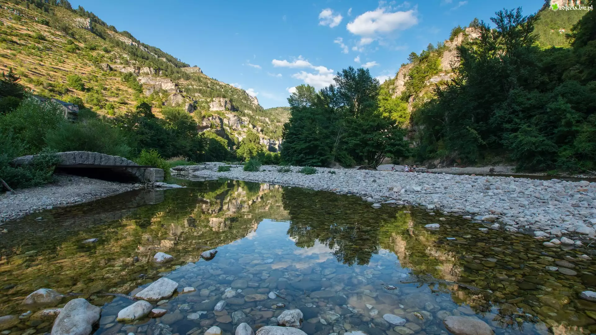 Zdjęcie Góry, Rzeka, Most, Kamienie, Drzewa