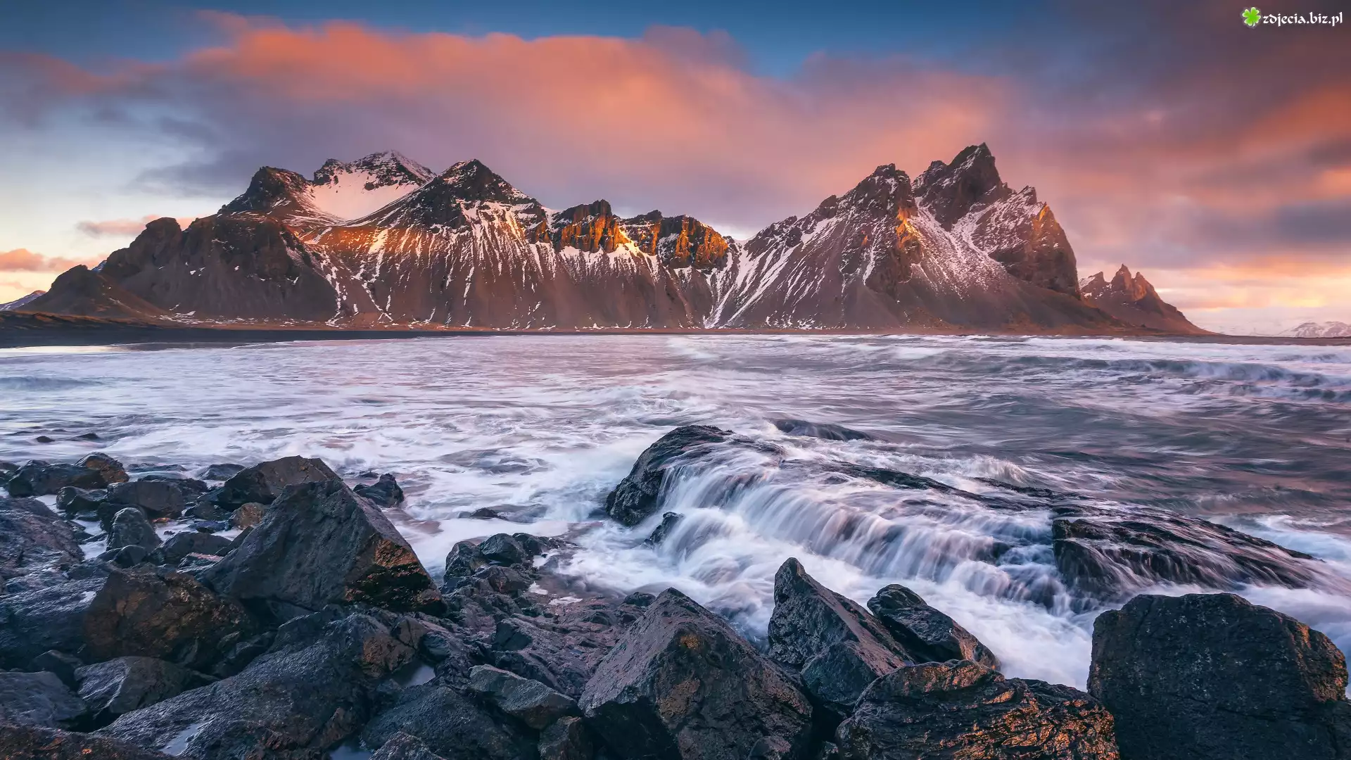 Zdjęcie Morze, Skały, Kamienie, Góry, Góra Vestrahorn, Islandia
