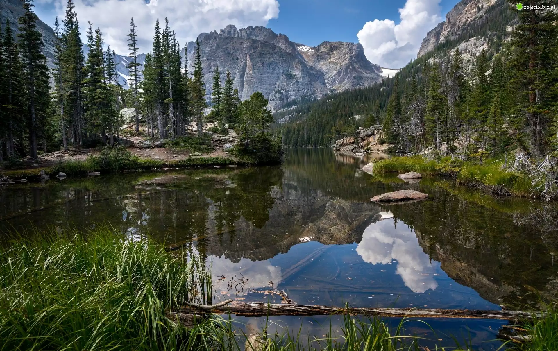 Zdjęcie Góry, Jezioro, Świerki, Kępka, Trawy