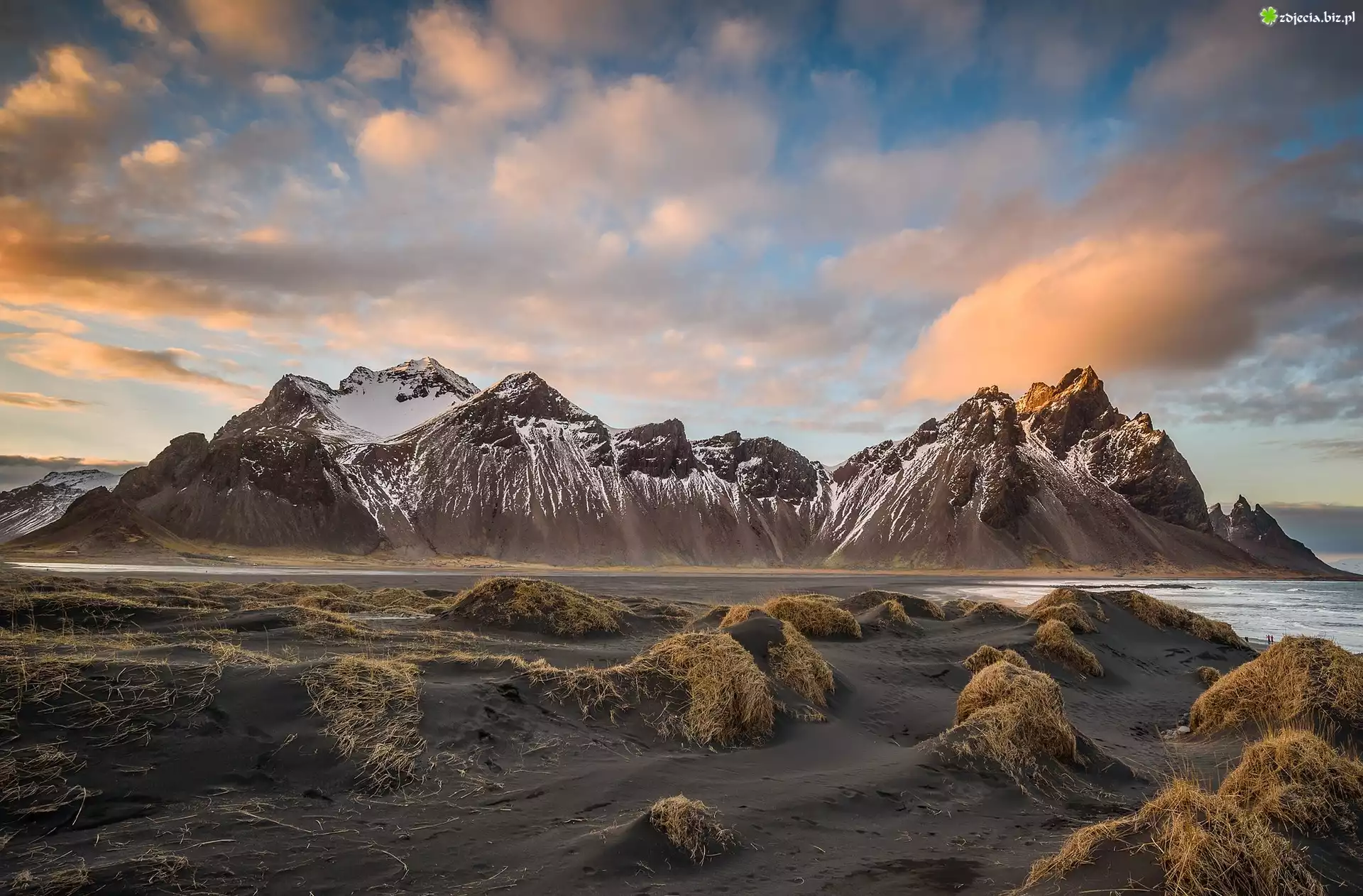 Zdjęcie Góry, Ciemny, Piasek, Wybrzeże, Kępki, Trawy