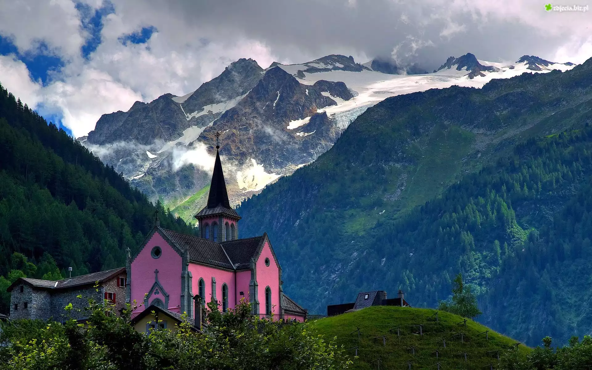 Zdjęcie, Kościół, Góry, Szwajcaria