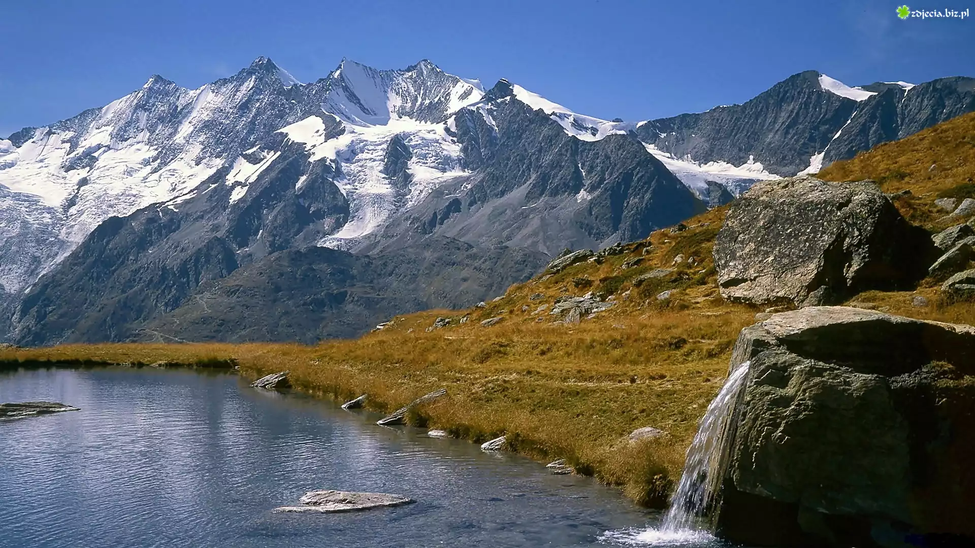 Zdjęcie Góry, Masyw, Mischabel, Jezioro, Kreuzboden, Wodospad