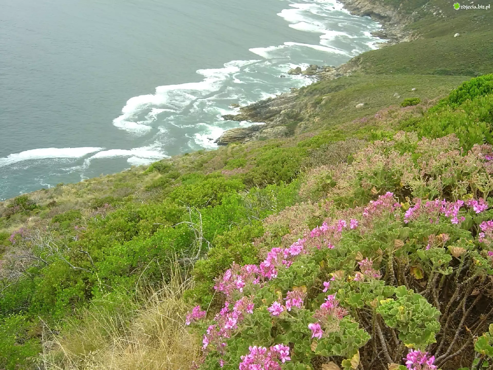 Zdjęcie Góry, Fale, Krzew, Kwiat