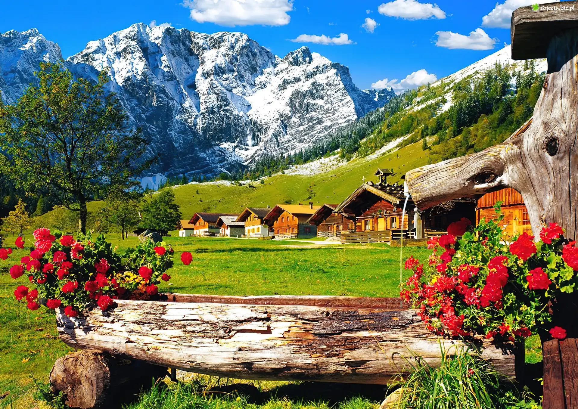 Zdjęcie Góry, Domy, Kwiaty, Lato