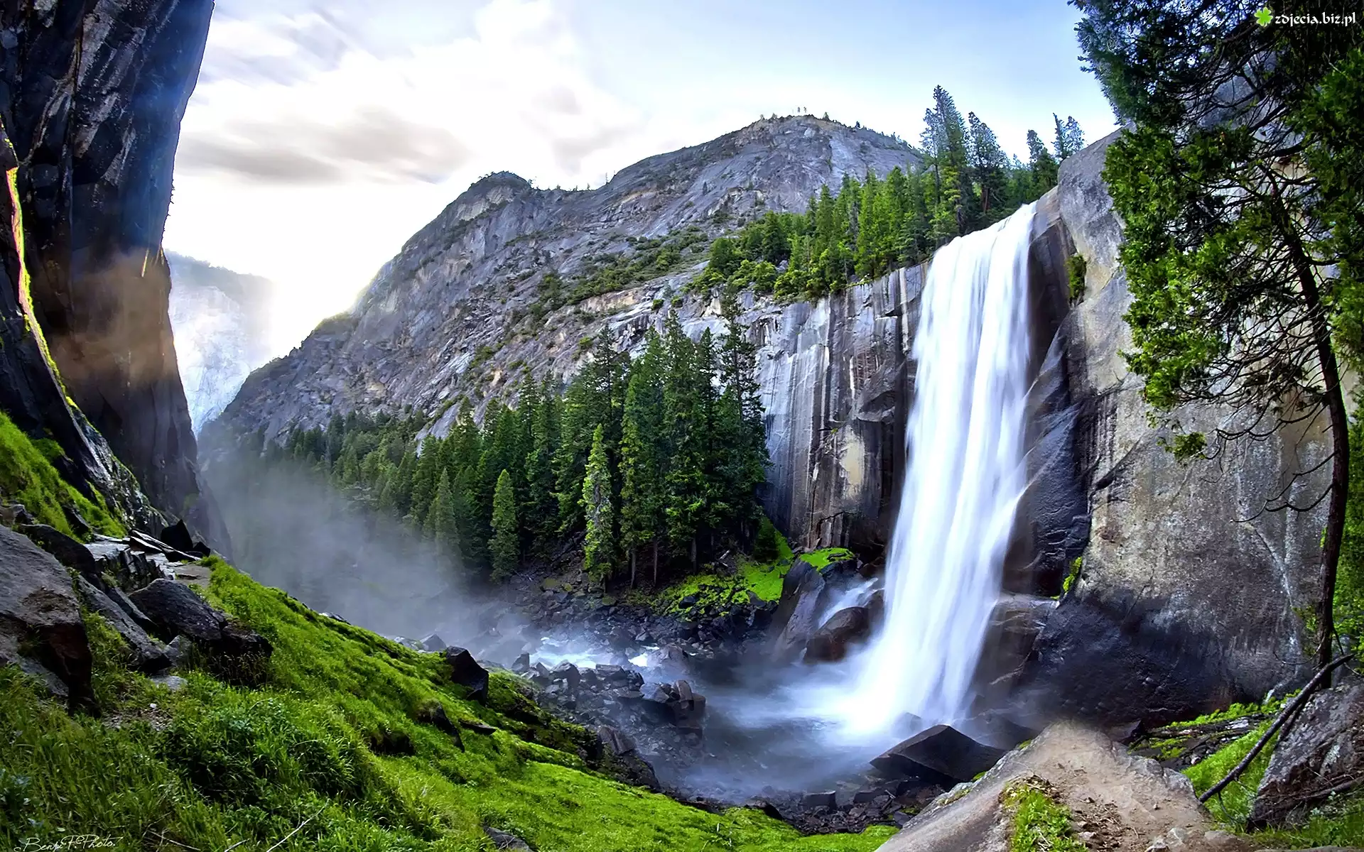Zdjęcie Góry, Skały, Las, Wodospad