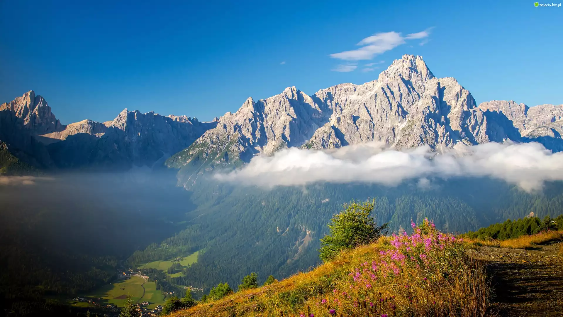 Zdjęcie Góry, Mgła, Dolina, Wioska, Lasy, Droga