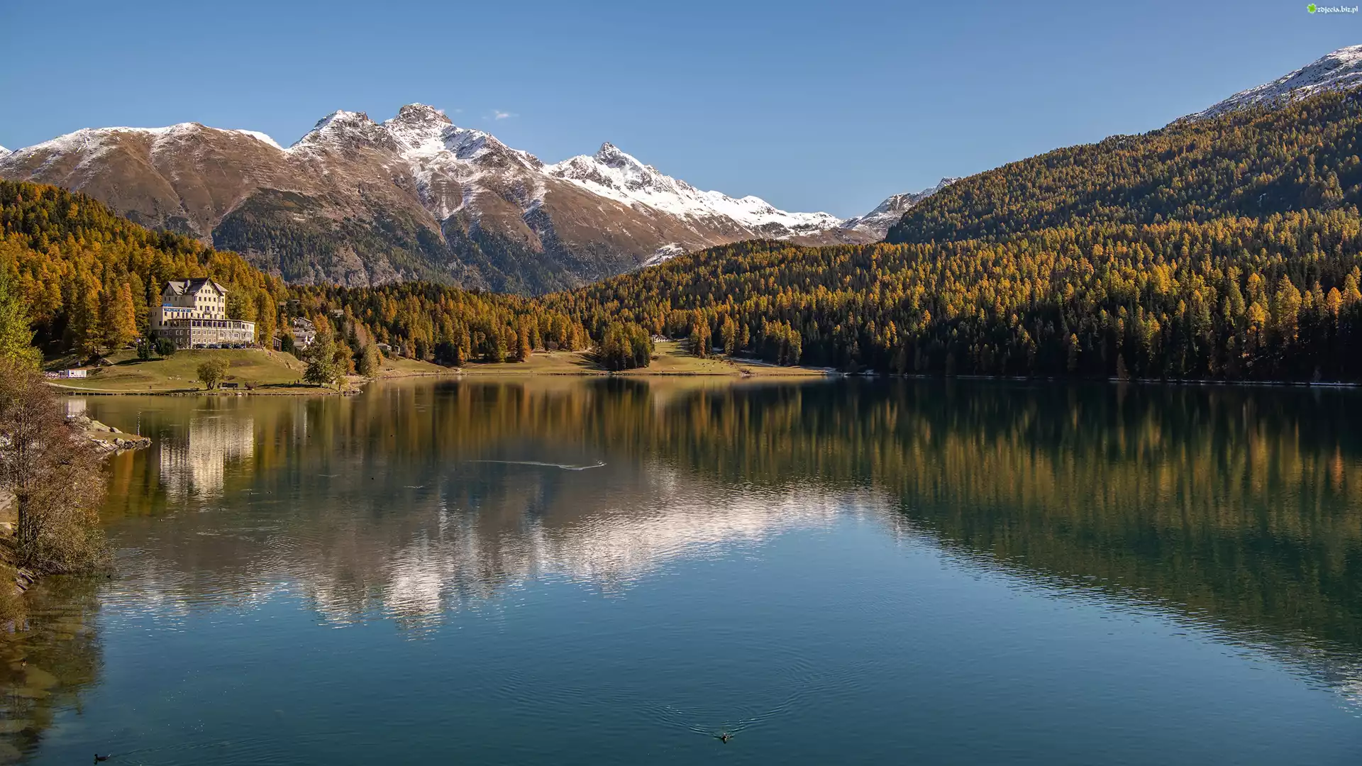Zdjęcie, Góry, Jezioro, Dom, Lasy, Jesień