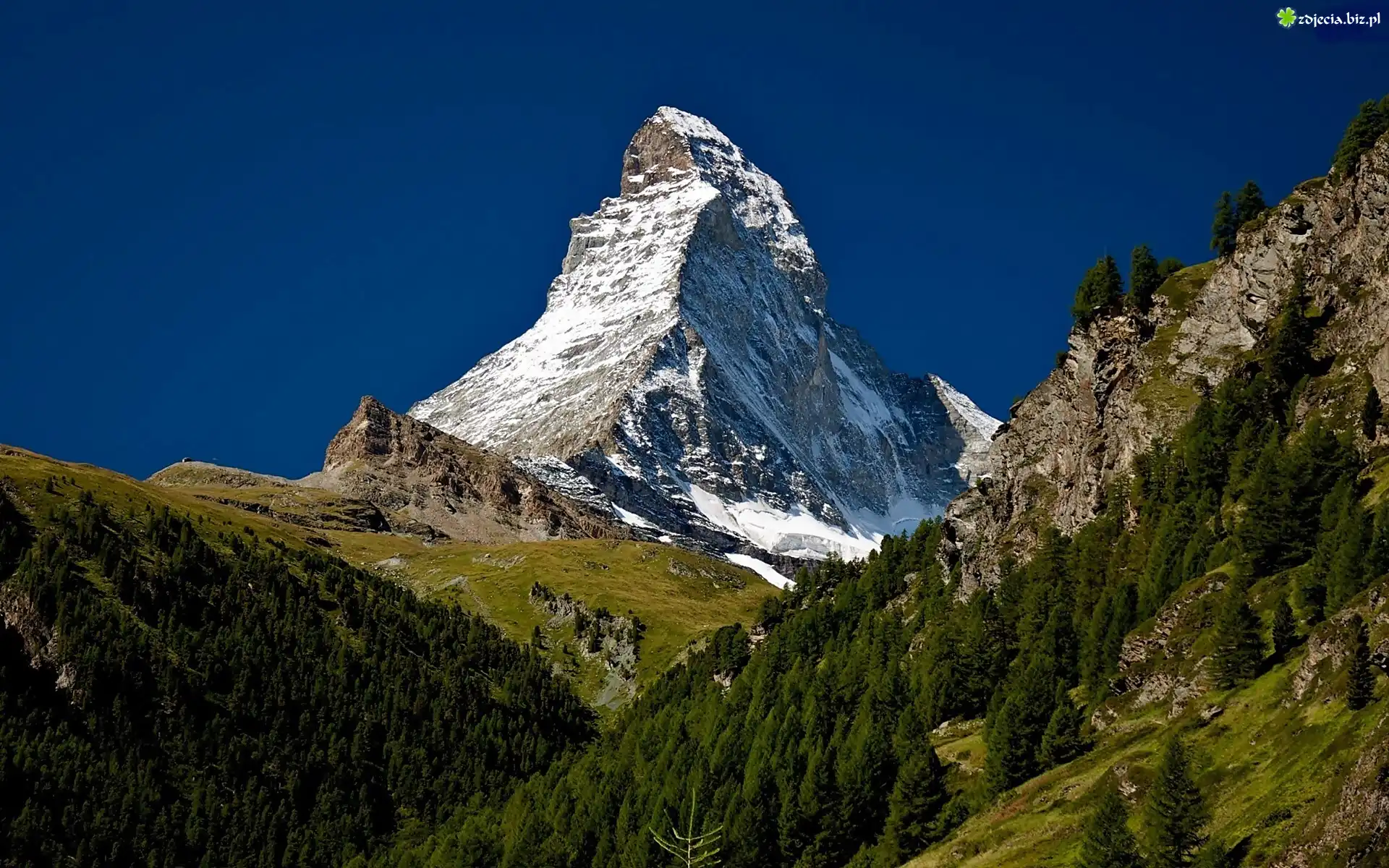 Zdjęcie Góry, Alpy, Szczyt, Matternhorn, Lasy, Łąki