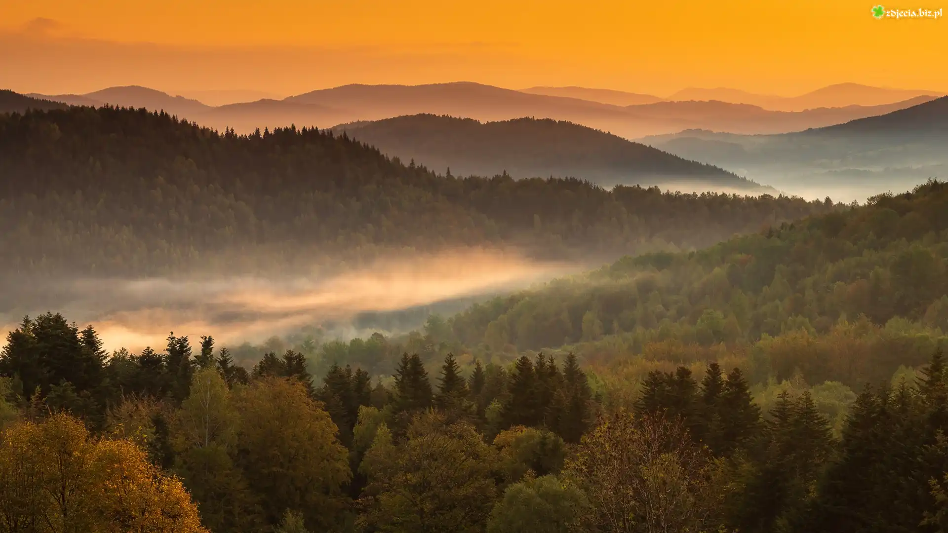 Zdjęcie Góry, Wzgórza, Lasy, Mgła