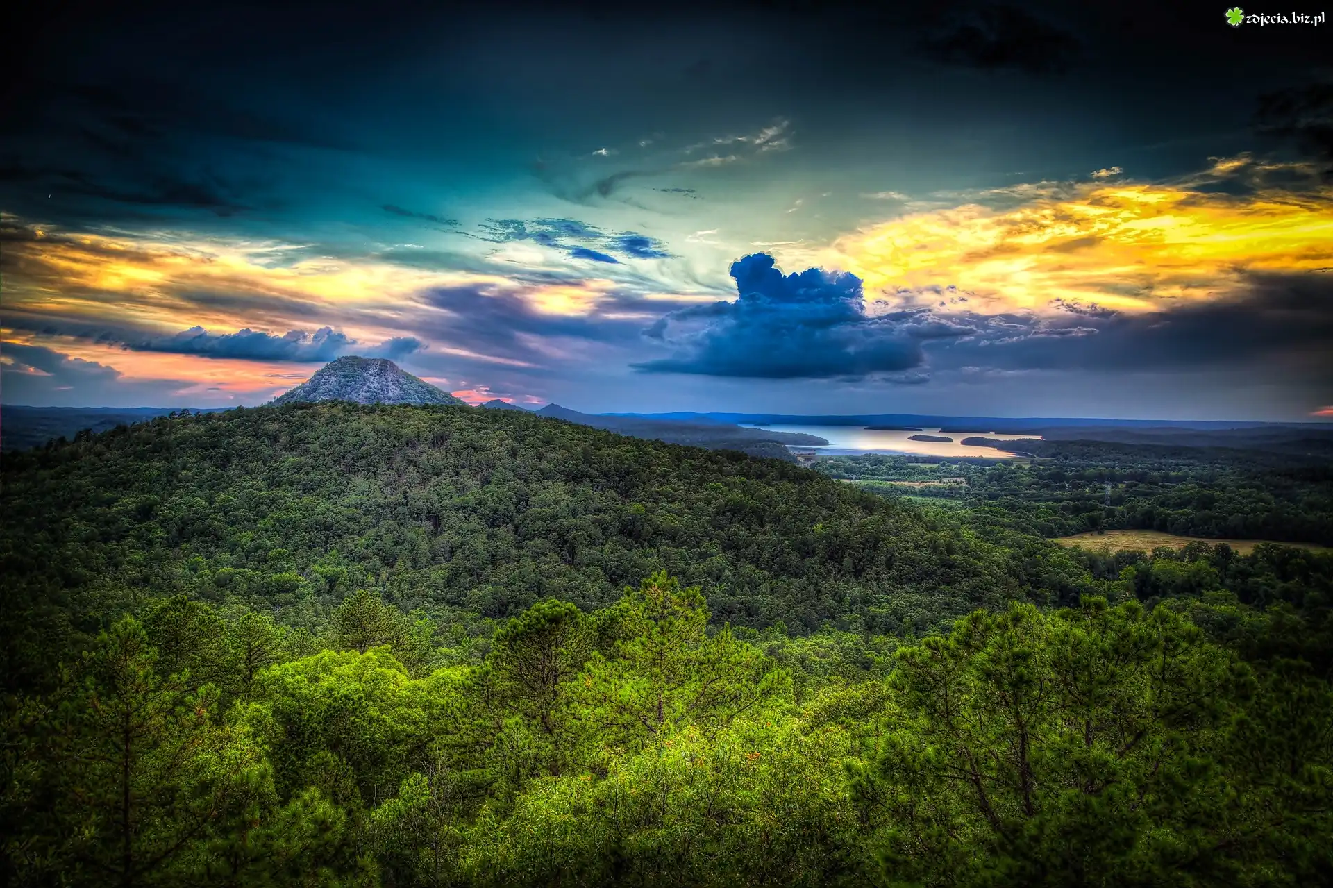 Zdjęcie, Góry, Lasy, Jezioro, Z lotu ptaka