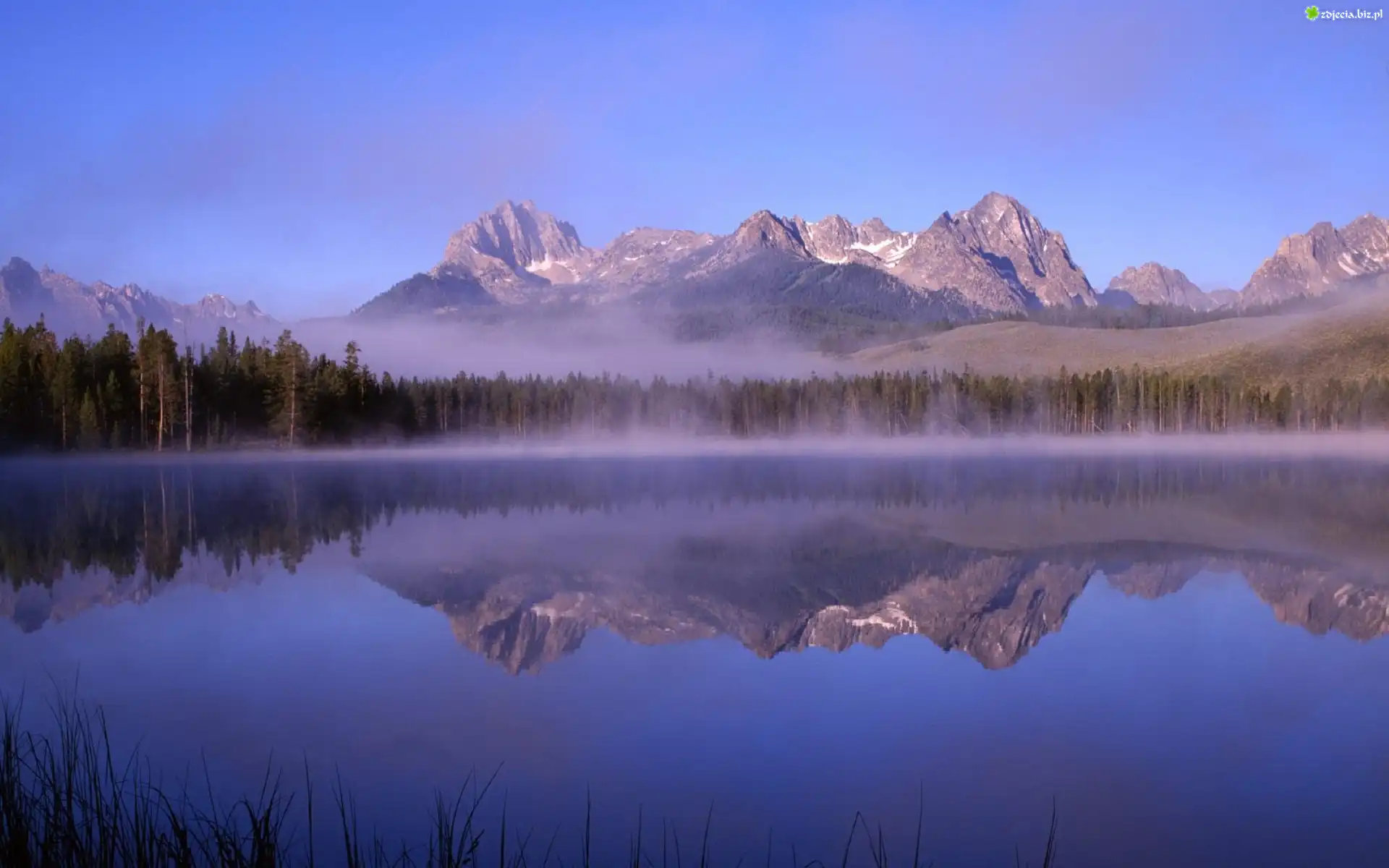 Zdjęcie Góry, Las, Jezioro, Mgła, Odbicie