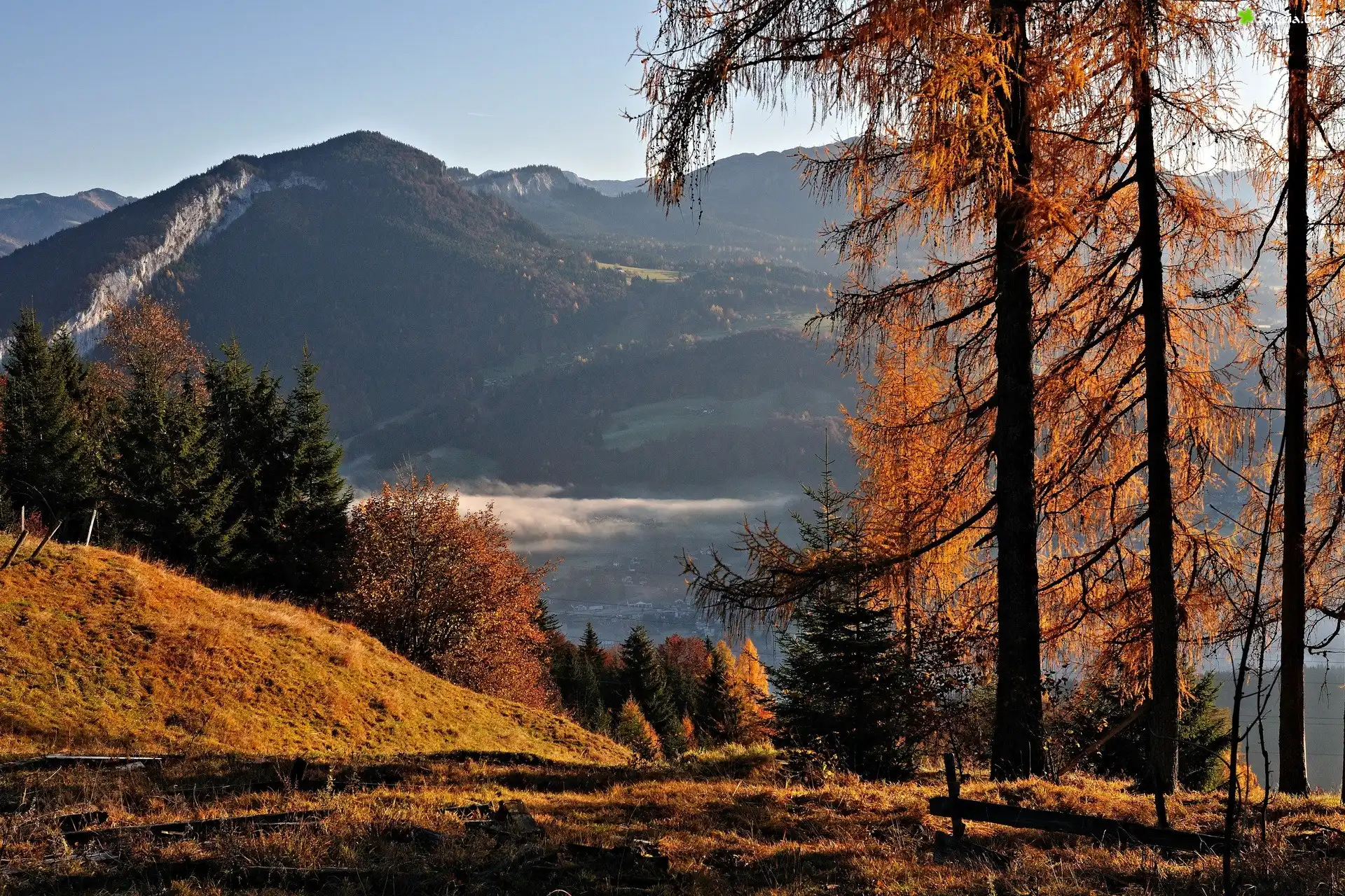 Zdjęcie Góry, Lasy, Mgła, Jesień
