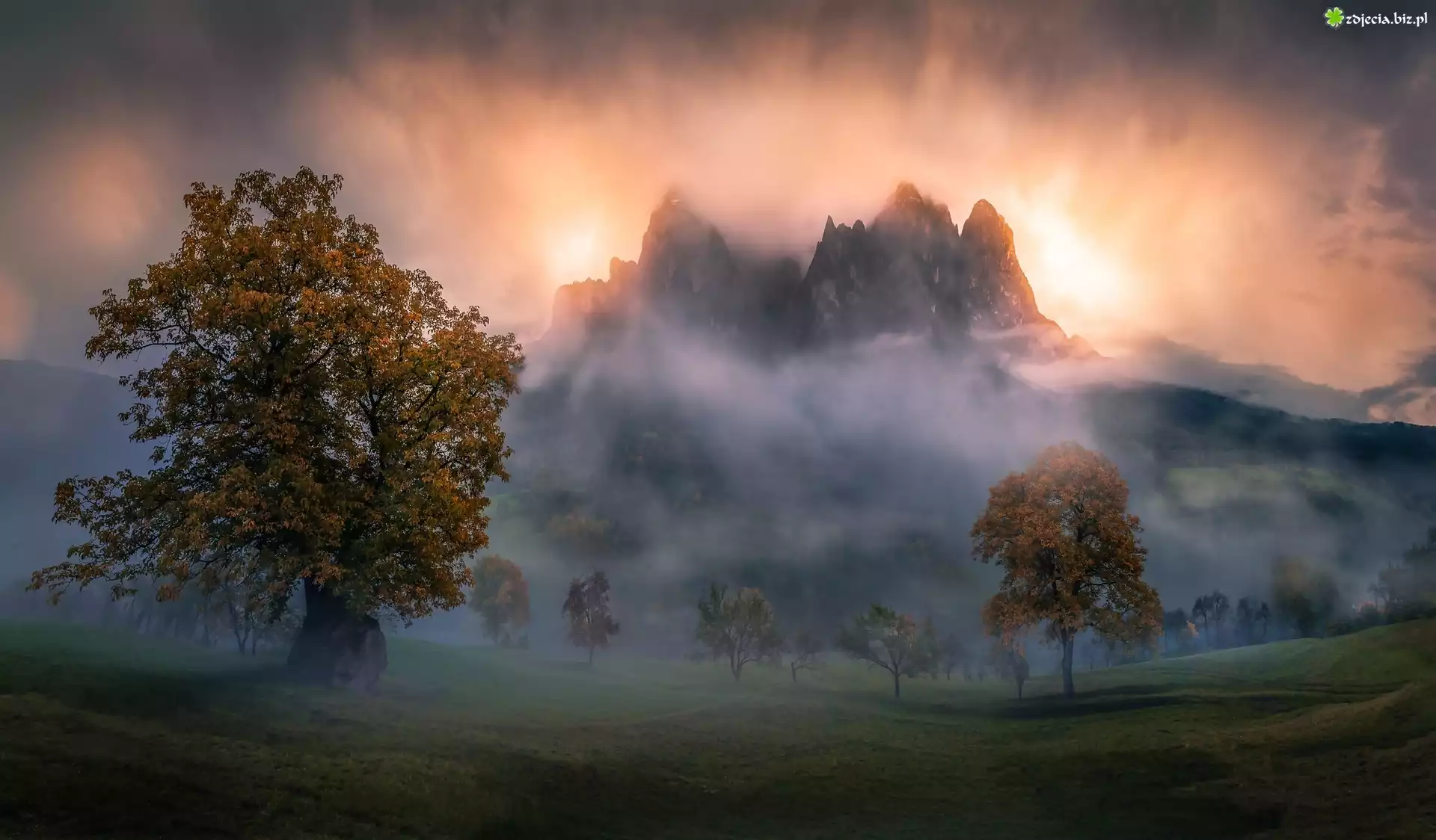 Zdjęcie Góry, Szczyty, Mgła, Drzewa