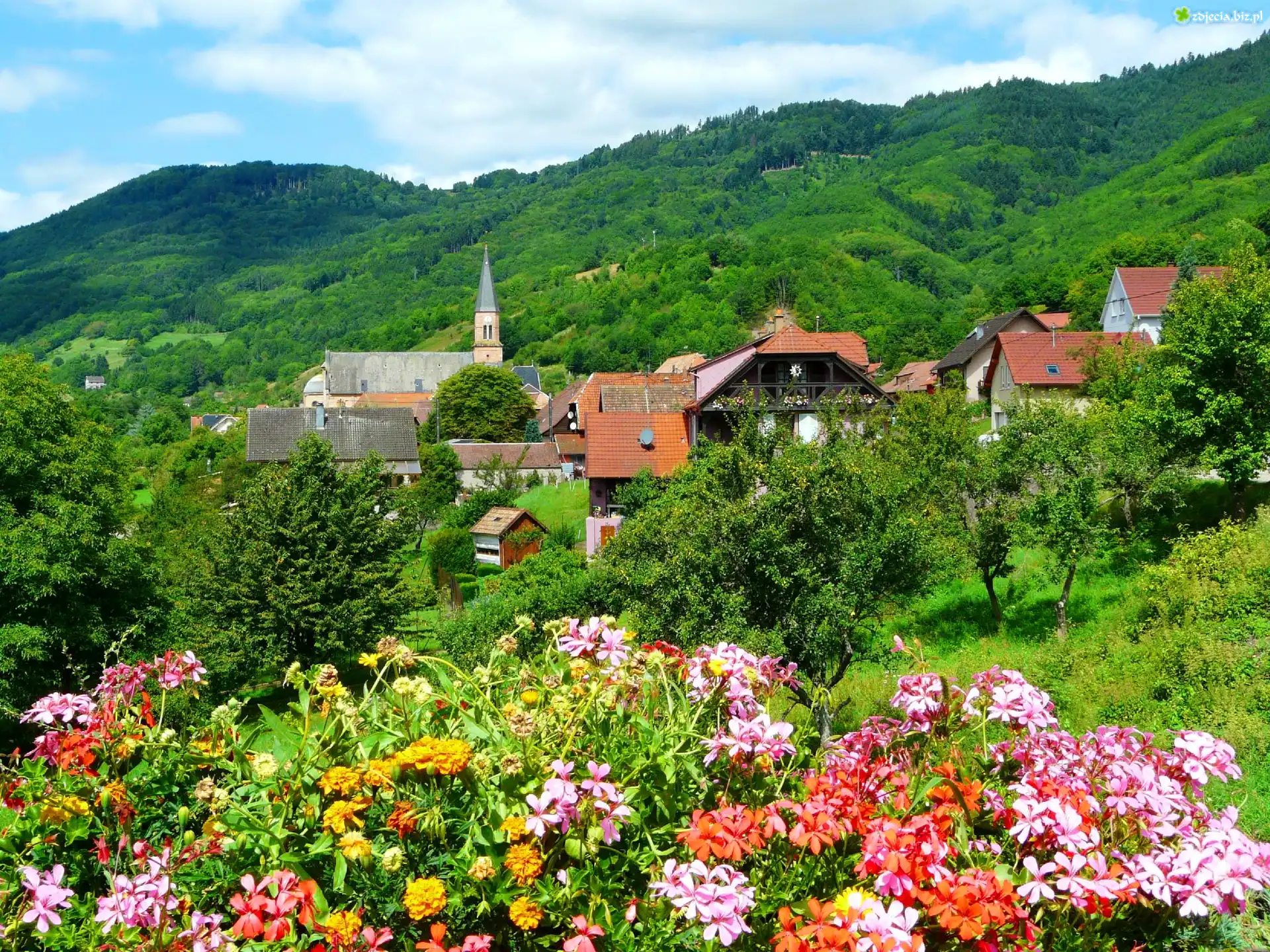 Zdjęcie Miasteczko, Góry, Kwiaty