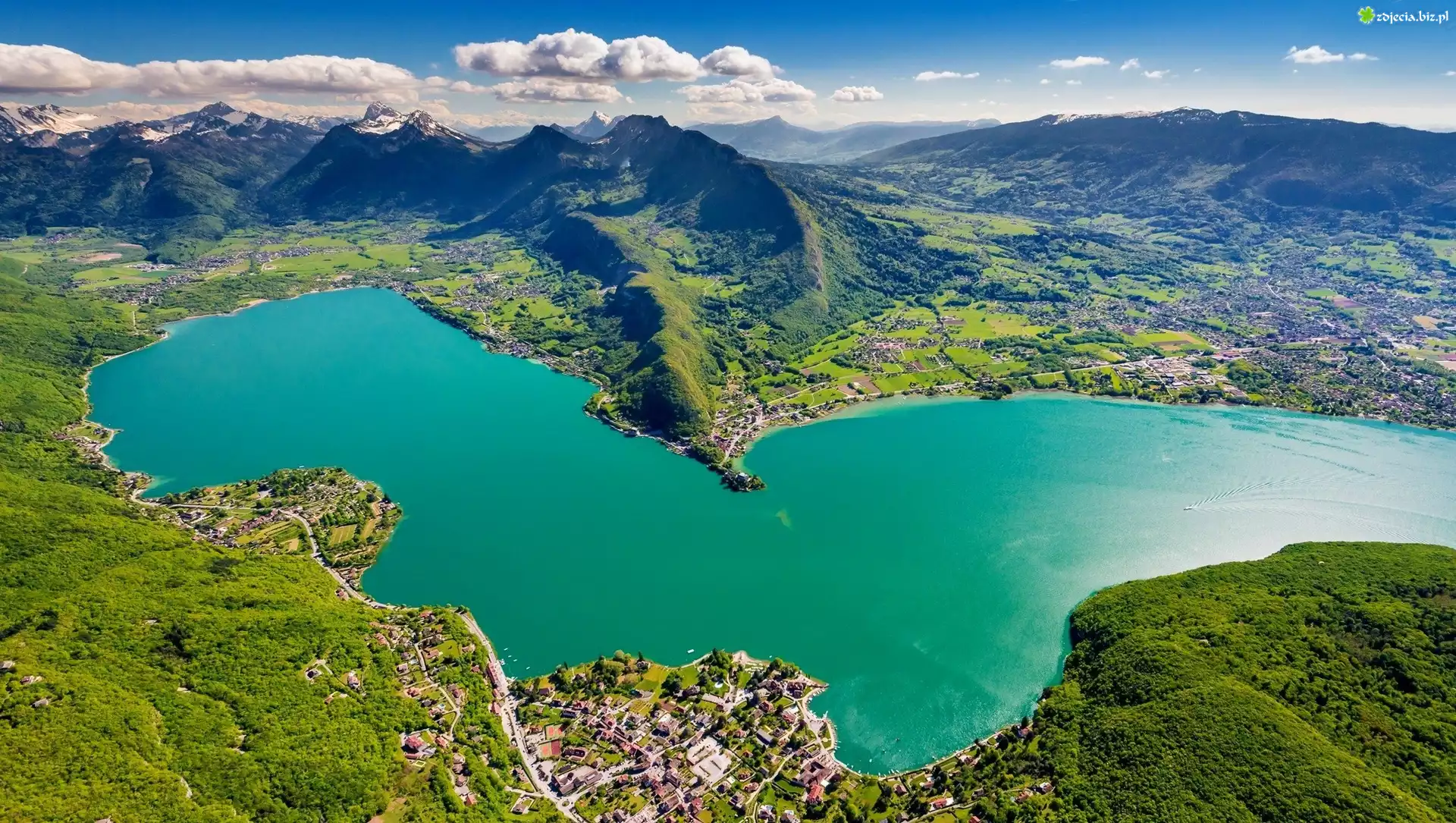 Zdjęcie Góry, Jezioro, Chmury, Niebo, Roślinność