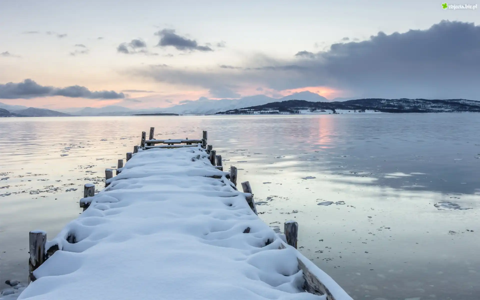 Zdjęcie Góry, Jezioro, Molo, Śnieg, Zima
