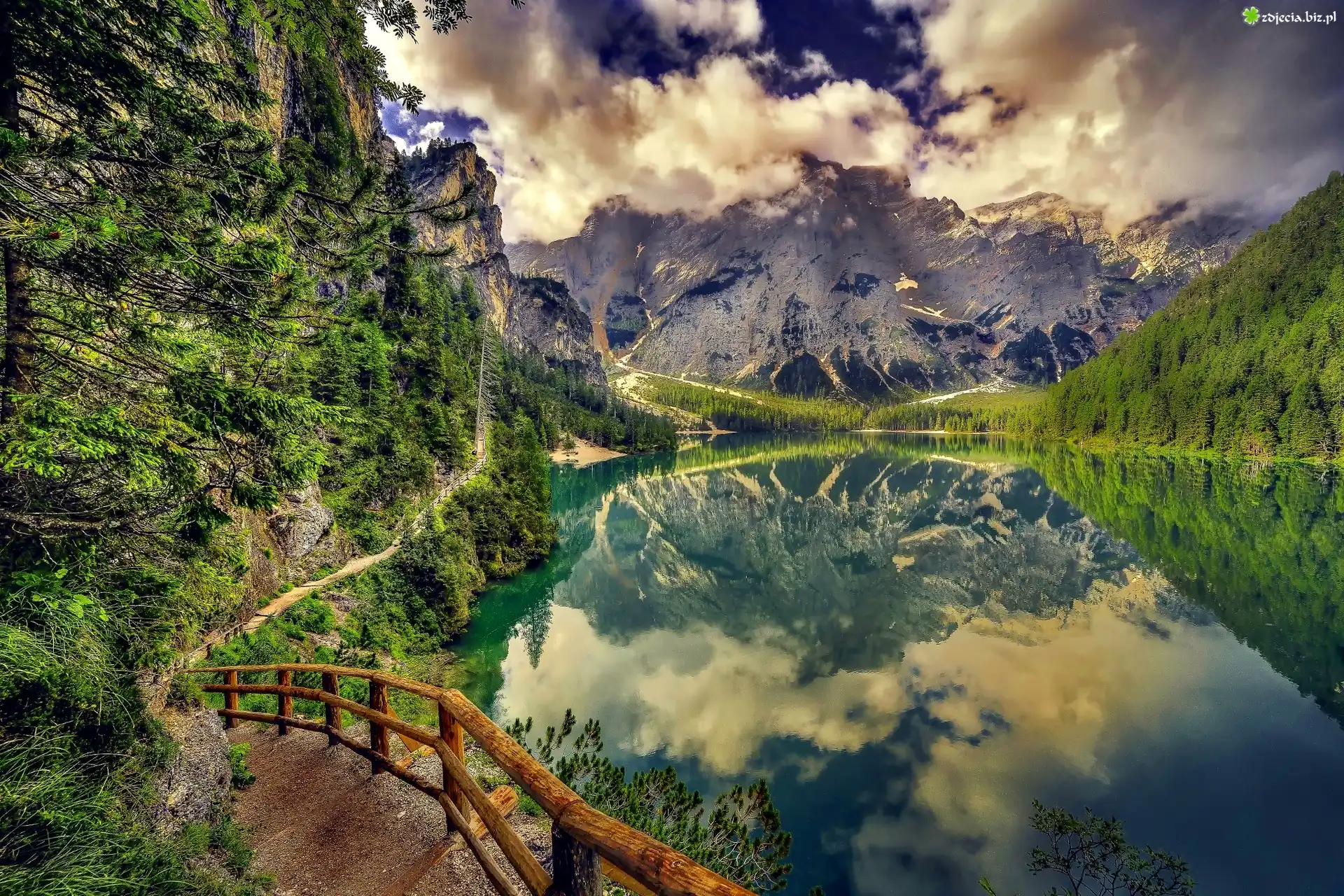 Zdjęcie Góry, Jezioro, Odbicie, Zejście