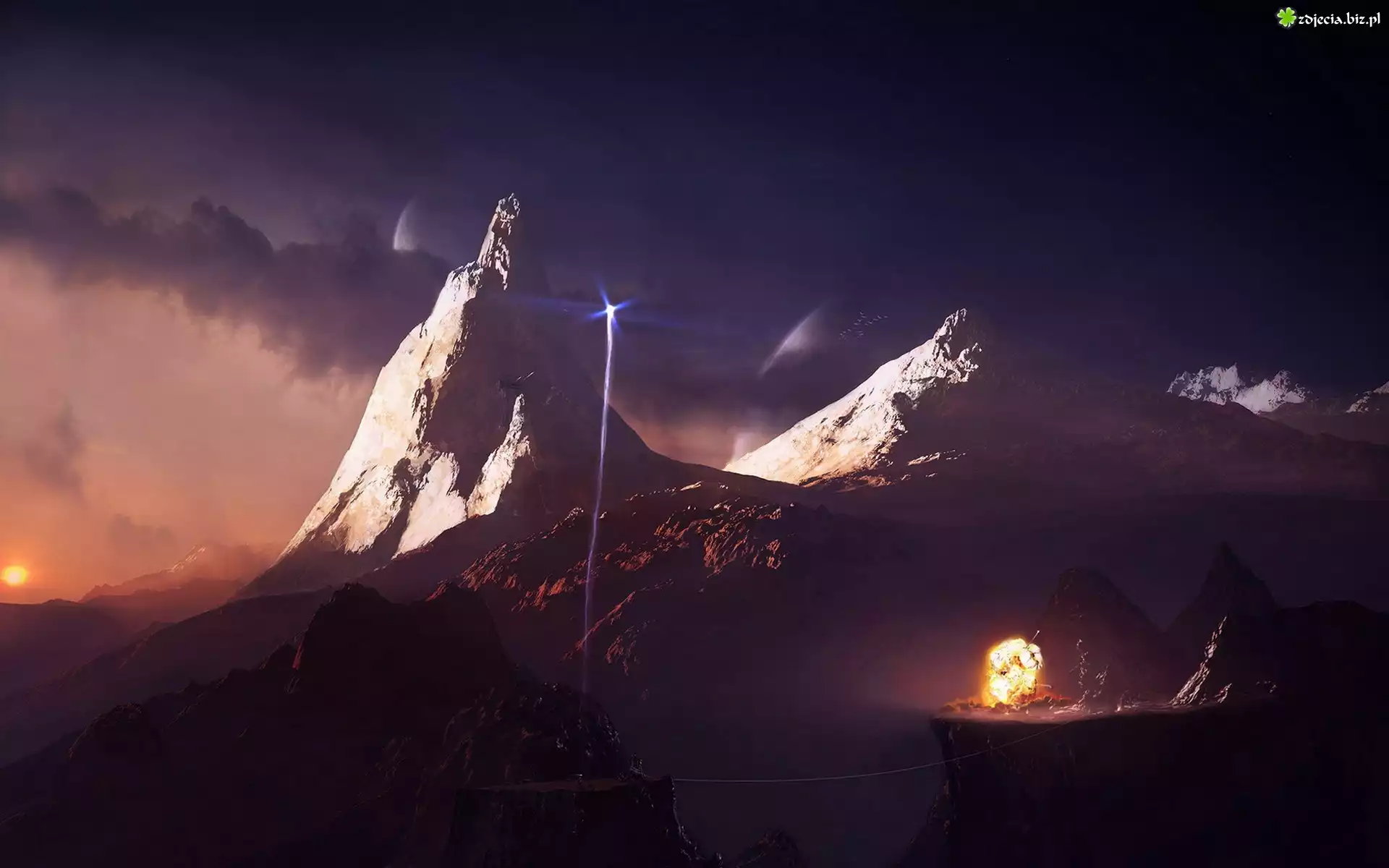 Zdjęcie Góry, Wysokość, Śnieg, Ogień, Słońce
