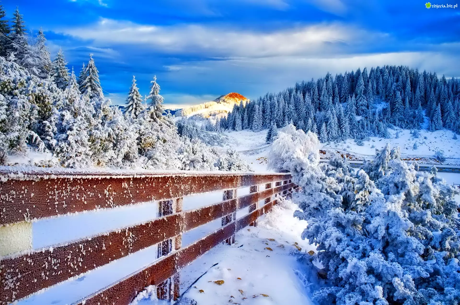 Zdjęcie Góry, Lasy, Ogrodzenie, Zima