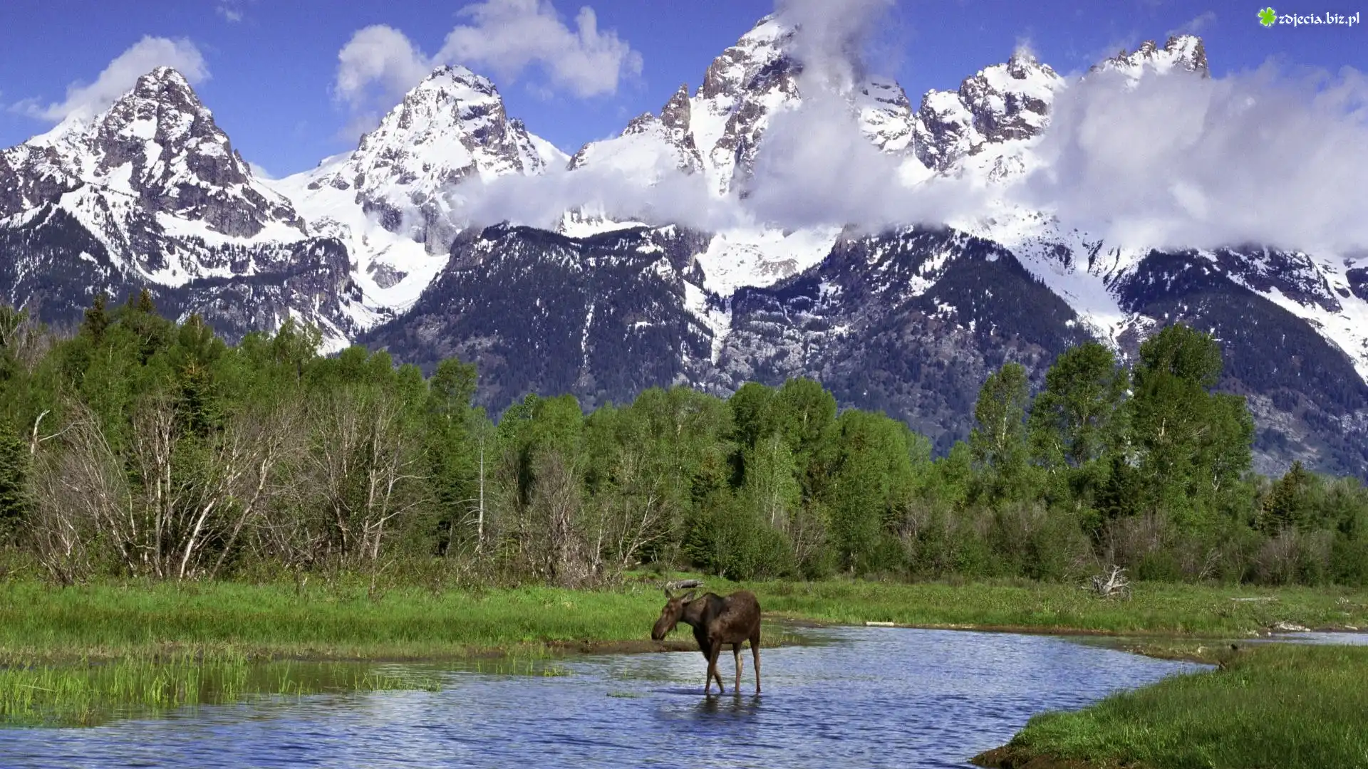 Zdjęcie Góry, Drzewa, Rzeka, Łoś, Klępa