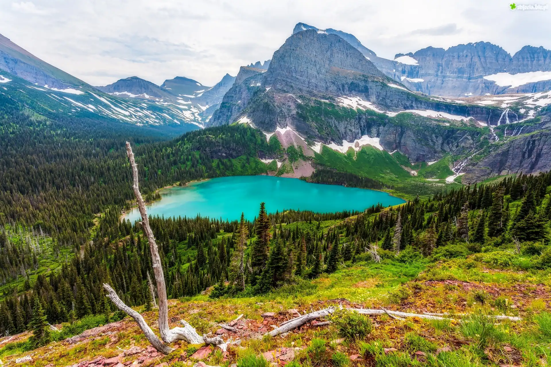 Zdjęcie, Góry, Lasy, Jezioro, Montana, Park Narodowy