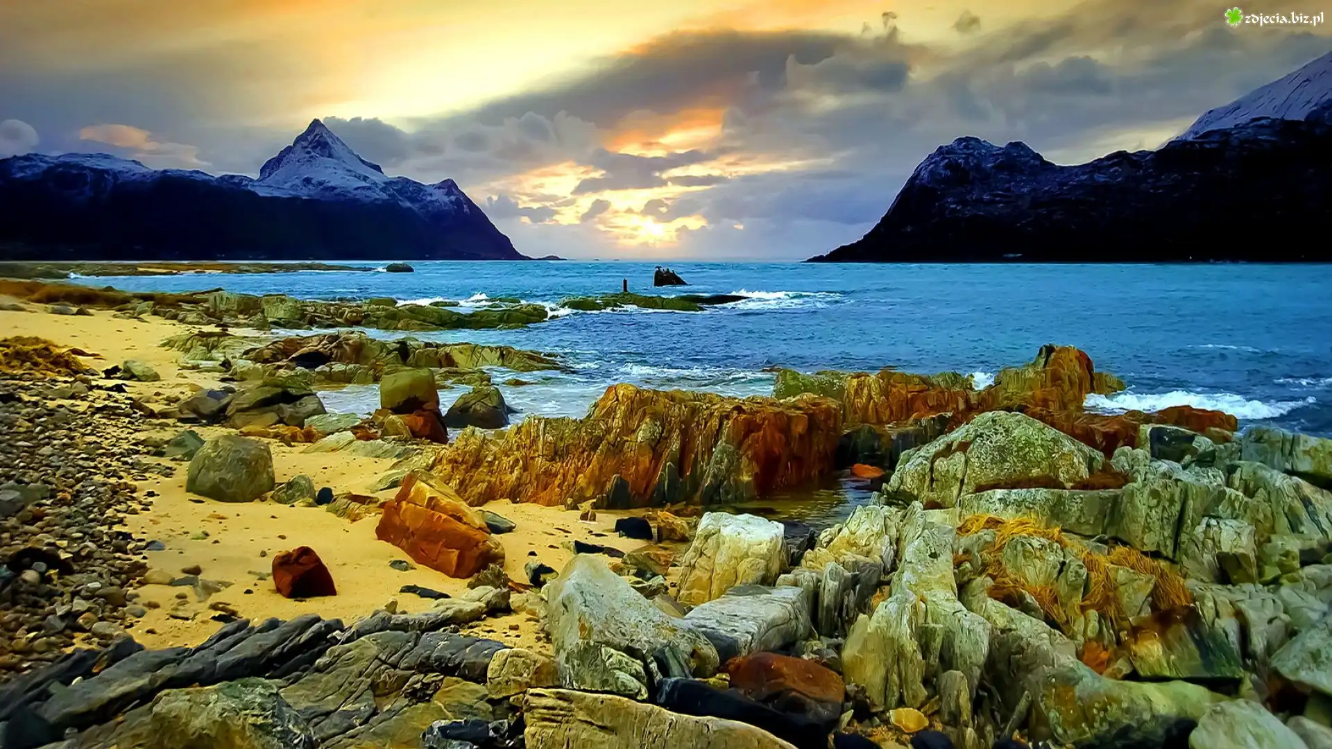 Zdjęcie, Góry, Morze, Plaże, Kamienie