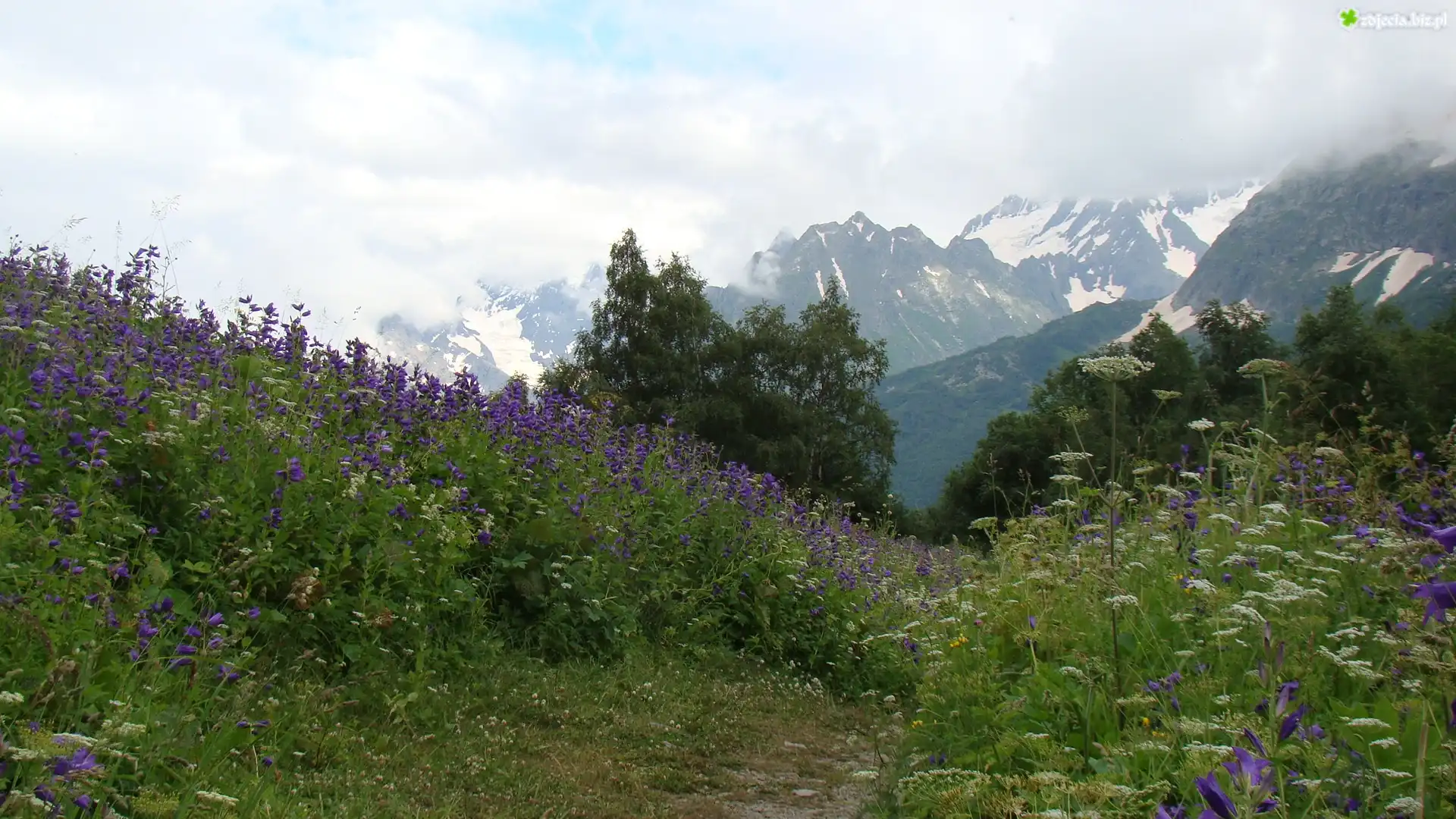 Zdjęcie Góry, Śnieg, Kwiaty, Polne, Drzewa