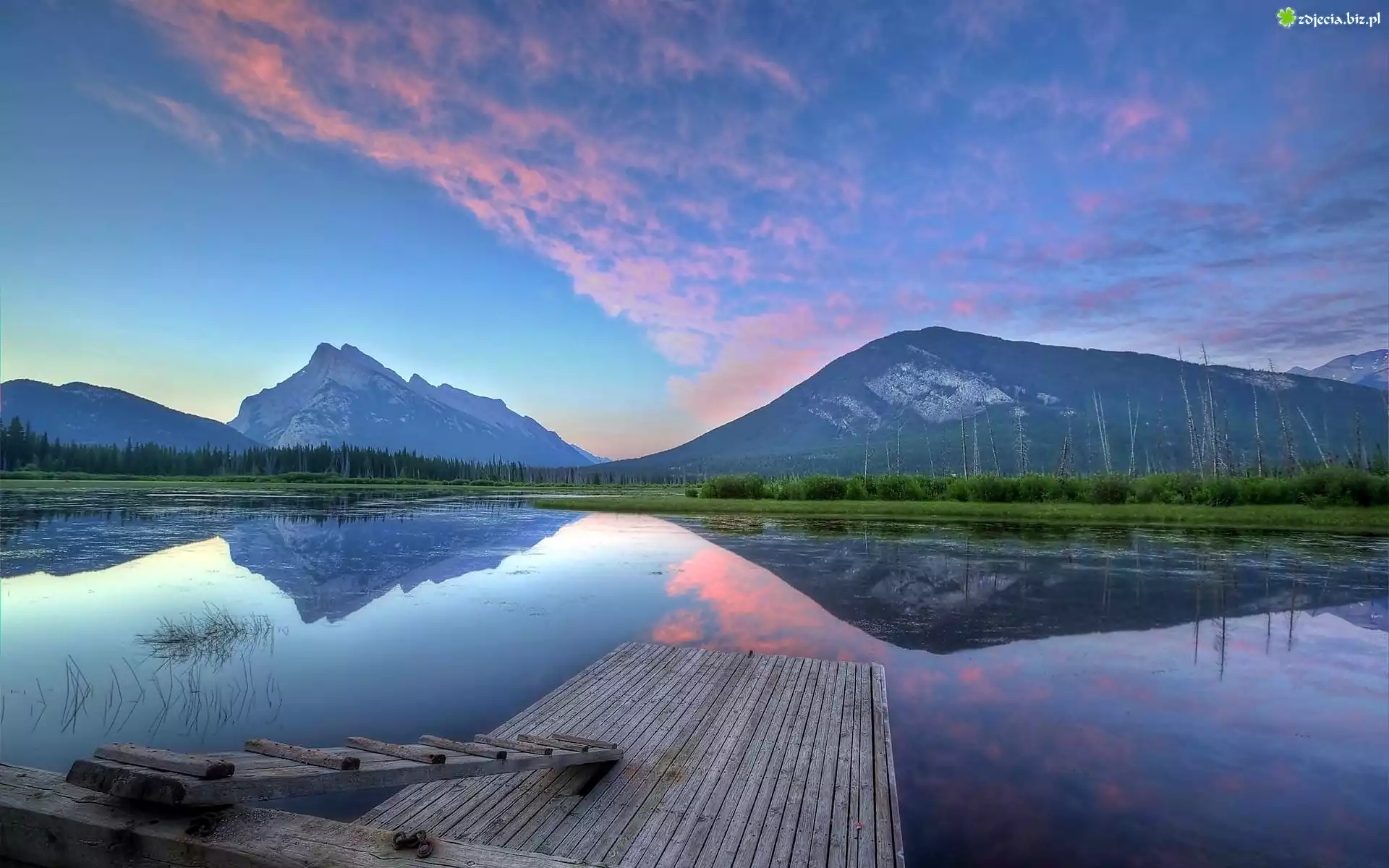 Zdjęcie Góry, Jezioro, Pomost, Odbicie
