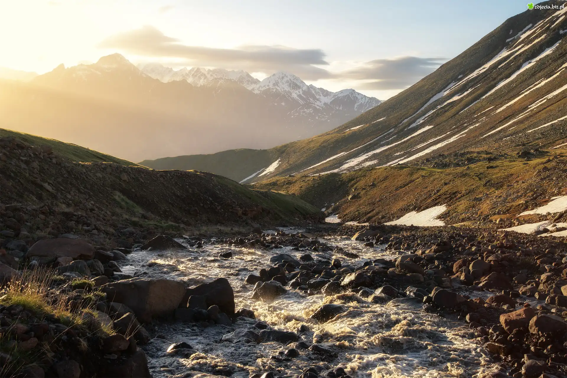 Zdjęcie, Góry, Mgła, Kamienie, Potok, Rzeka