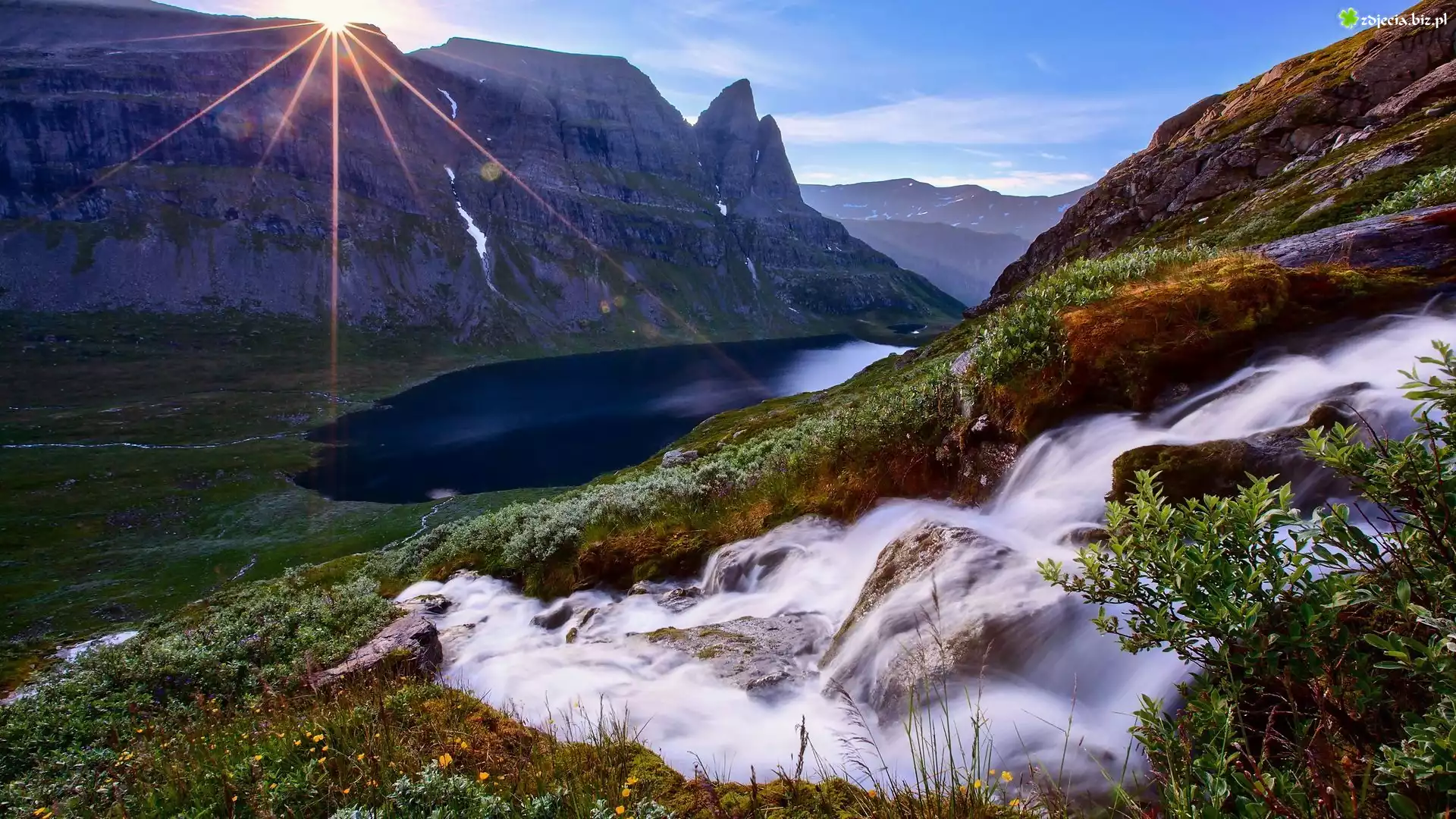 Zdjęcie Góry, Rzeka, Jezioro, Promienie słońca